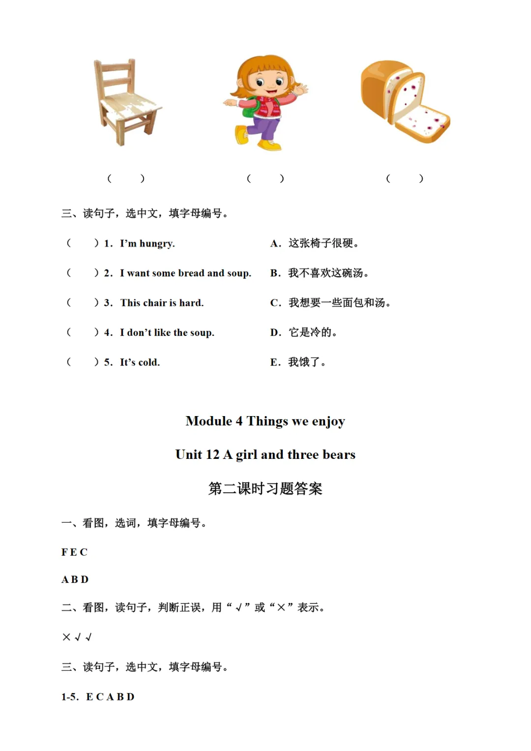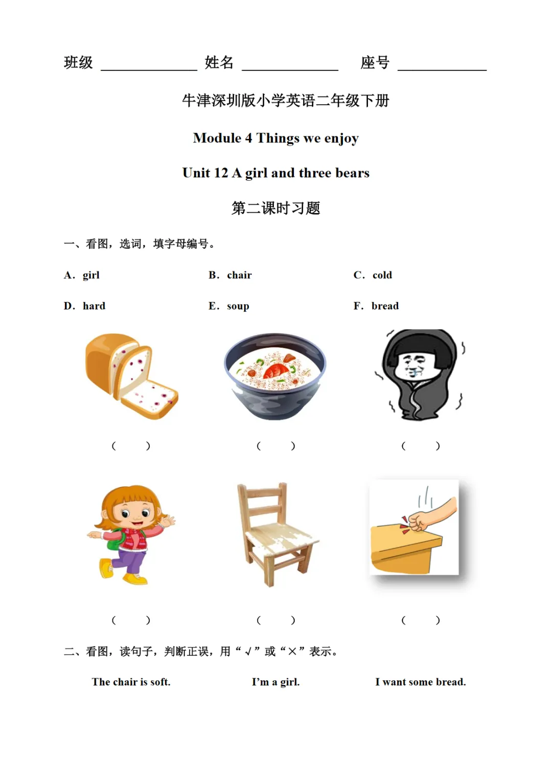 【免费下载】Unit 12 A girl and three bears 第二课时习题【沪教牛津】二下英语,WORD电子版,可编辑,可打印