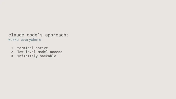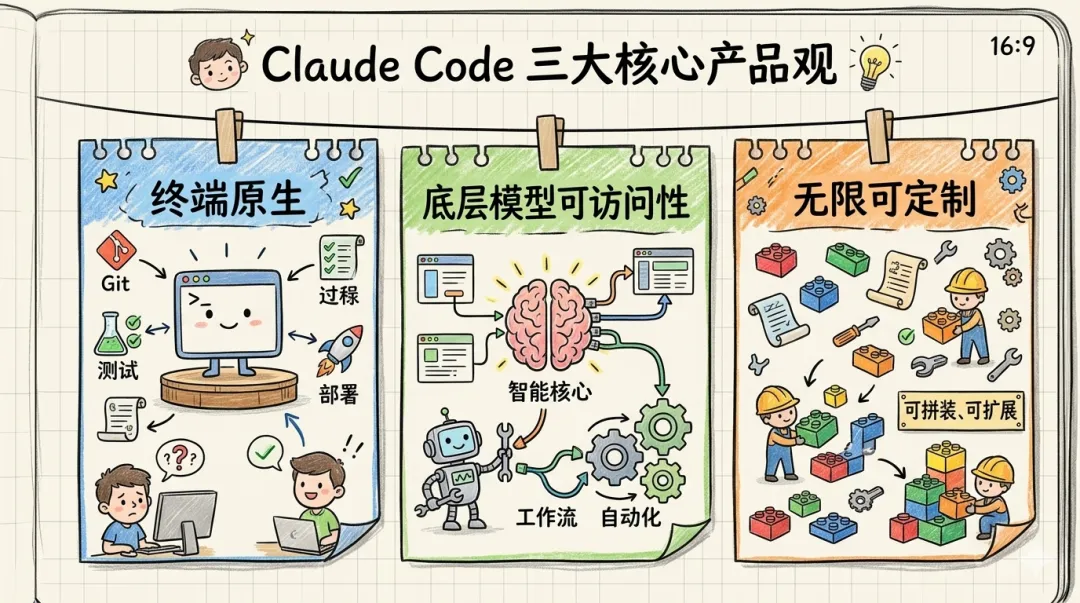 第二,Claude Code 给出的答案,不是做一个更花哨的聊天框。而是选择三条路线:终端原生、底层模型可访问性、无限可定制。
