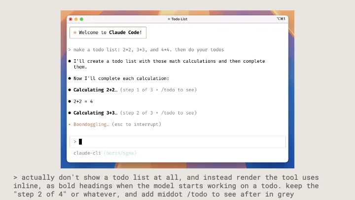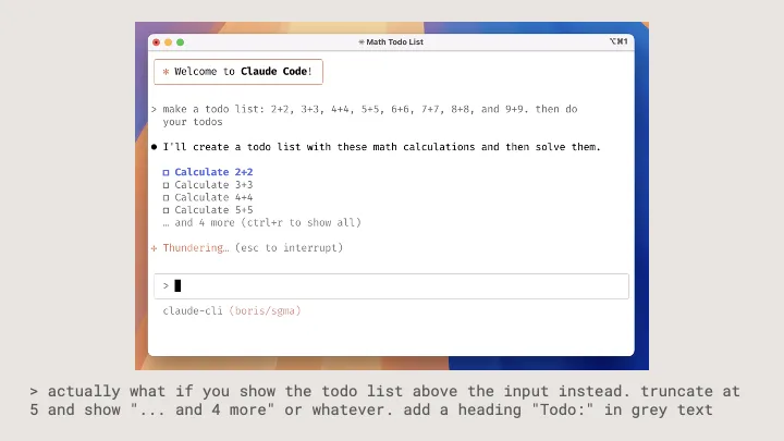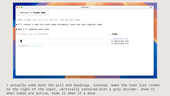 Boris 给出的 TODO UI 反复迭代的例子,本质上就在说明:今天的编码智能体,已经不只是在写实现。它开始进入产品和设计反馈闭环。