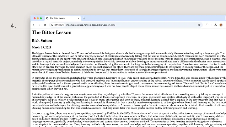 这里其实隐含着一个特别像《The Bitter Lesson》的判断: