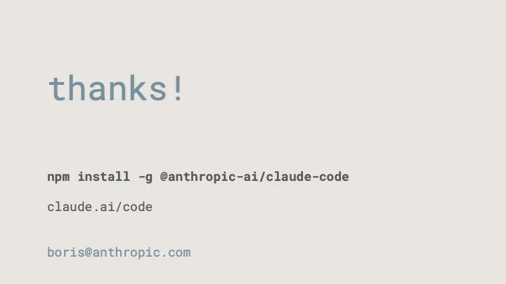 建议结合 Claude Code 这份原始 PPT 一起看。你会更直观看到 Boris 是怎么一步步把「AI 编程工具」讲成「编码智能体工作台」的。尤其是三条产品判断、三类工作流,以及最后三条 lessons,原始表达都很值得品味。