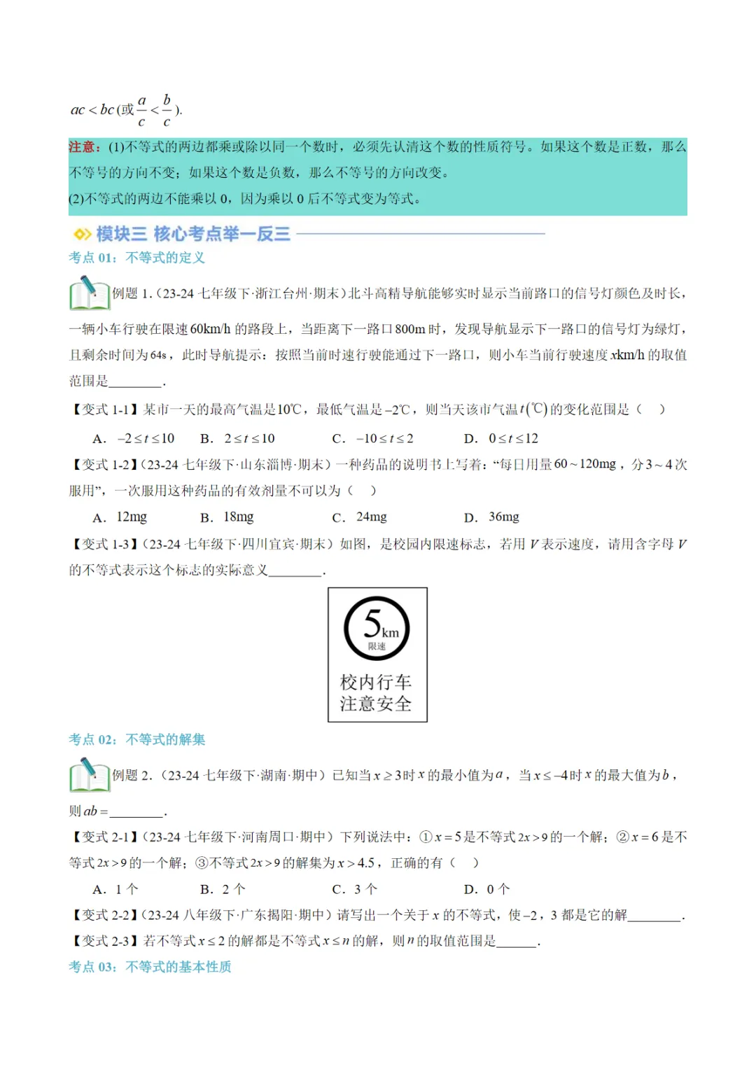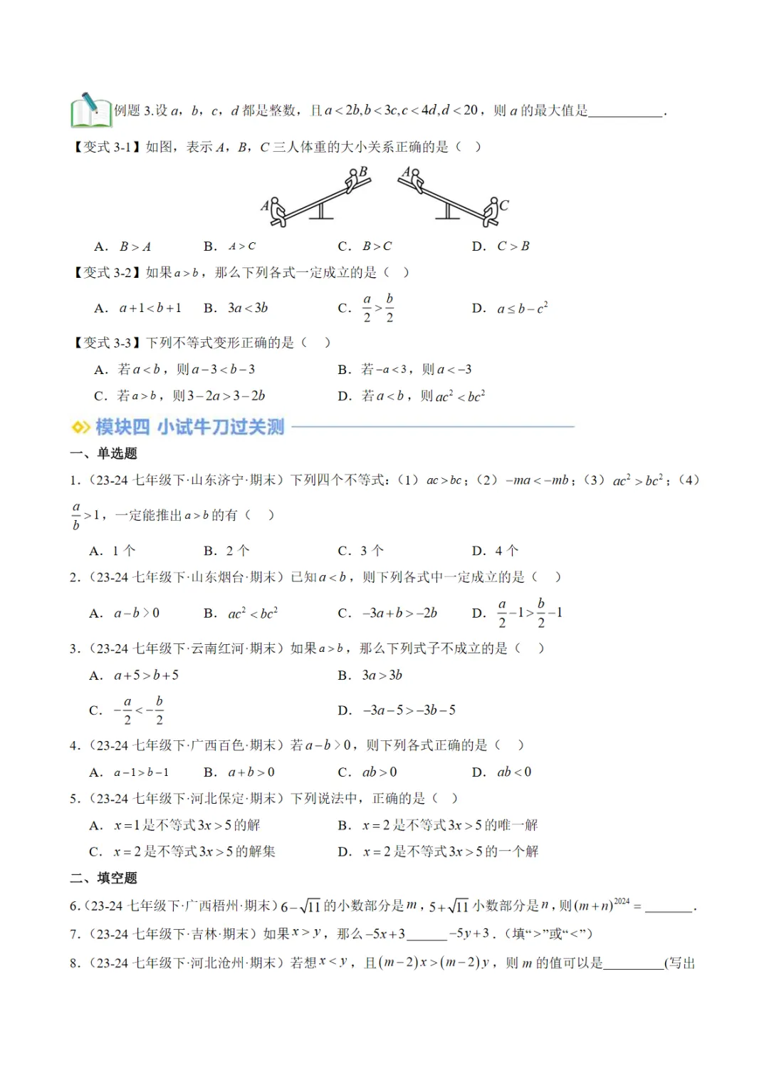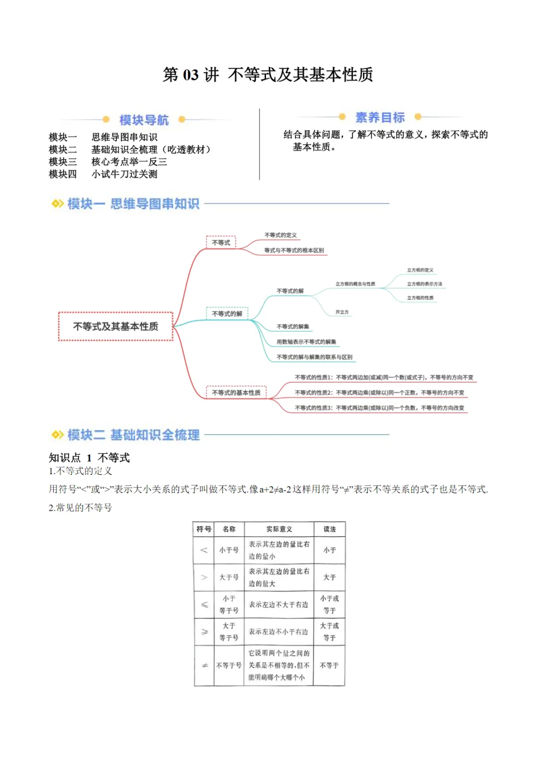 【免费下载】第03讲 不等式及其基本性质(原卷版)【沪科】七下数学寒假预习,WORD电子版,可编辑,可打印