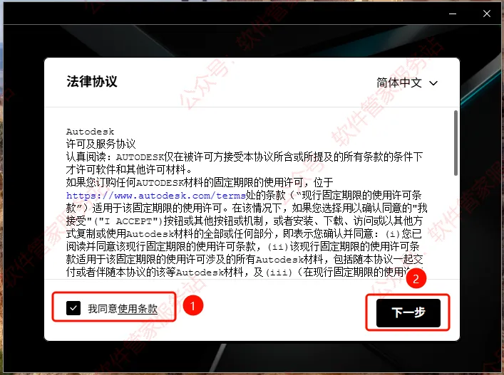 第六步:同意协议,并点【下一步】。