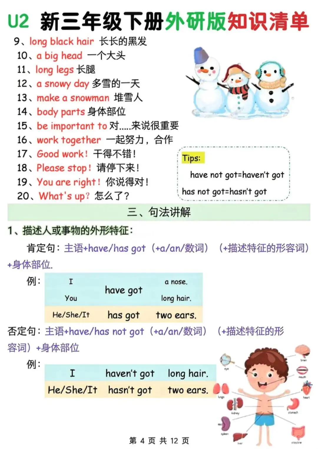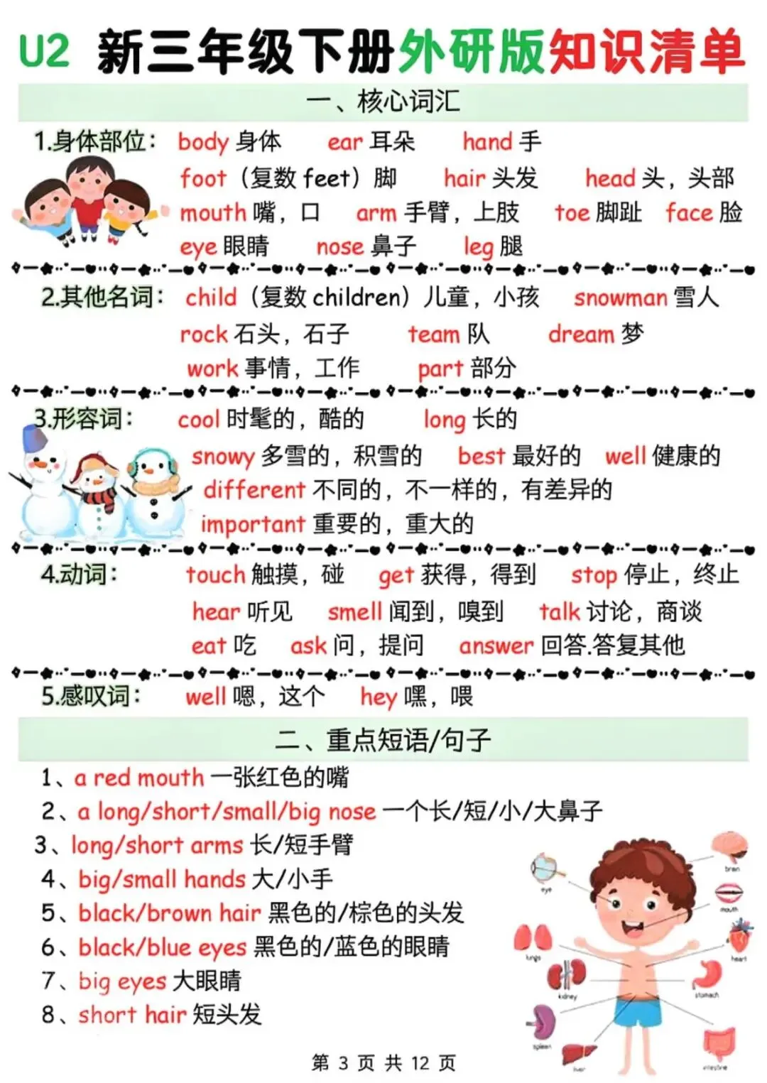 26春外研版三年级下册英语《1-6单元知识清单》,共12页,电子版可打印.