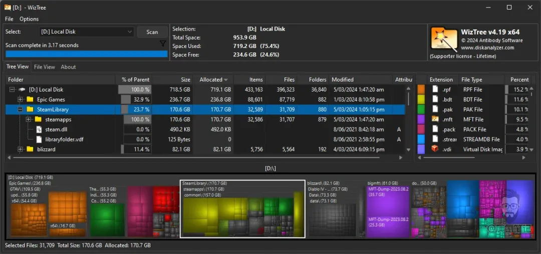 1️⃣ WizTree – 史上最快磁盘分析工具