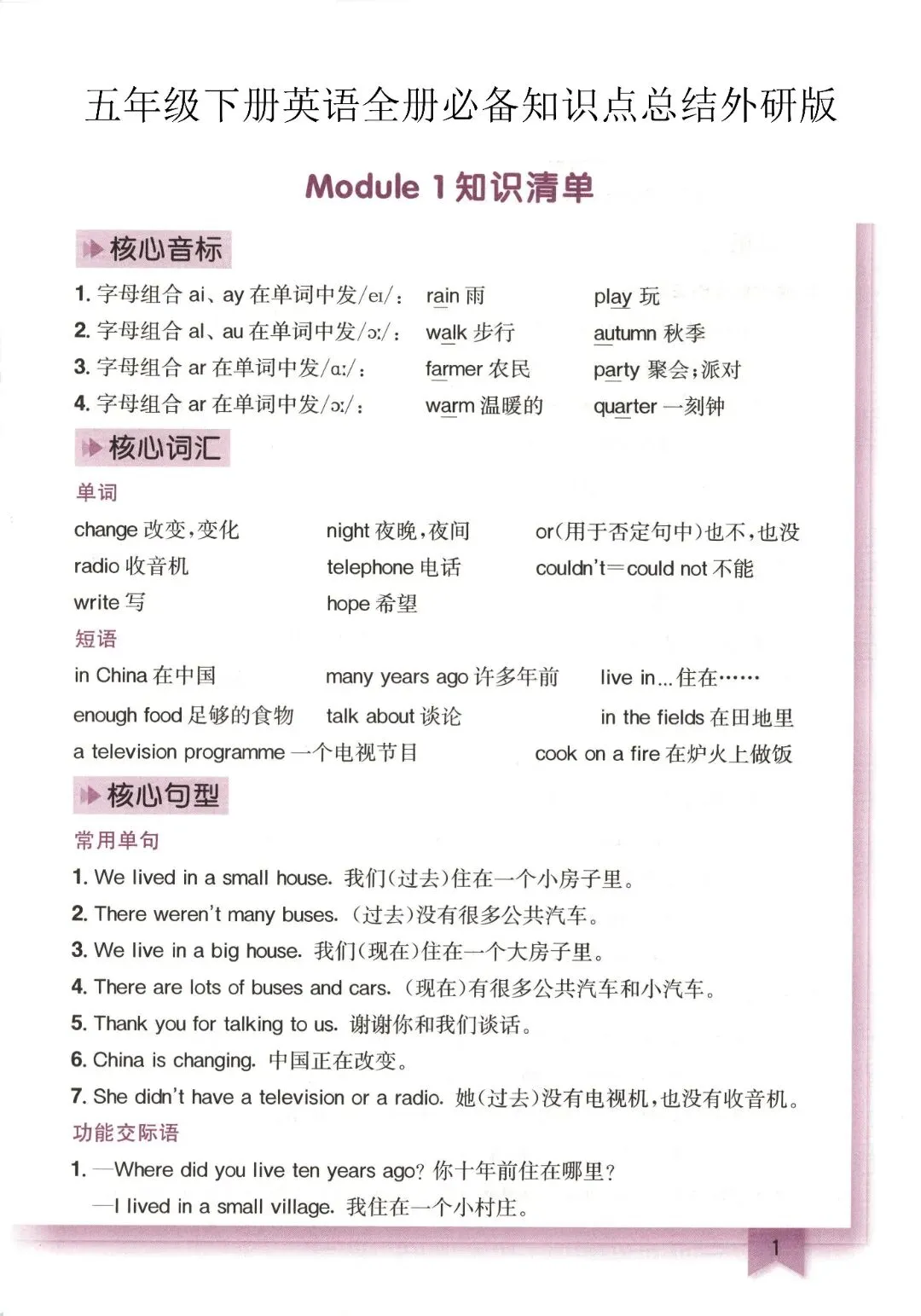 🌈今日分享26春外研版五年级下册英语《全册必备知识清单》,共24页,电子版可打印。需要的家长抓紧打印出来,让孩子在每天练一练吧。