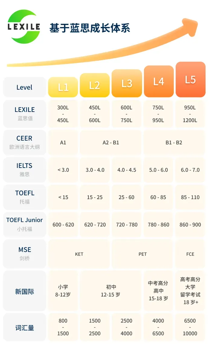 L1 蓝思 300L-6450L 的版本用简单短句、基础词汇讲解,适合小学高年级;