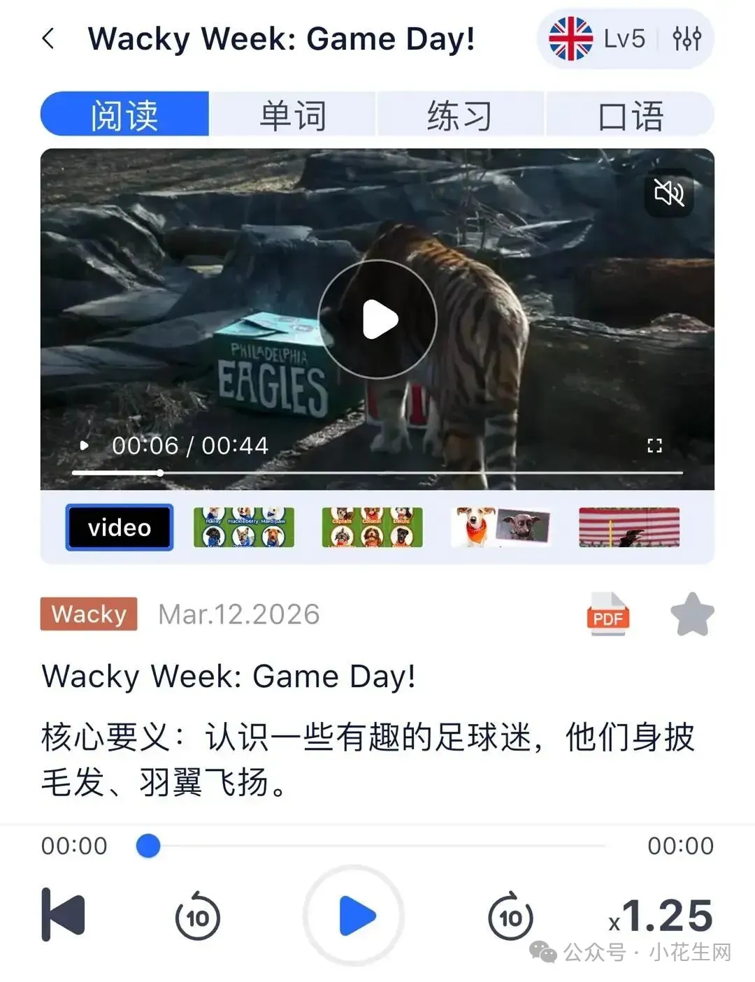 小行星APP的 “视频/图片导读 + 音频听读 + 文字阅读 +读后练习+口语跟读” ,让孩子不再孤立学英语,而是在沉浸式场景中练出地道能力。