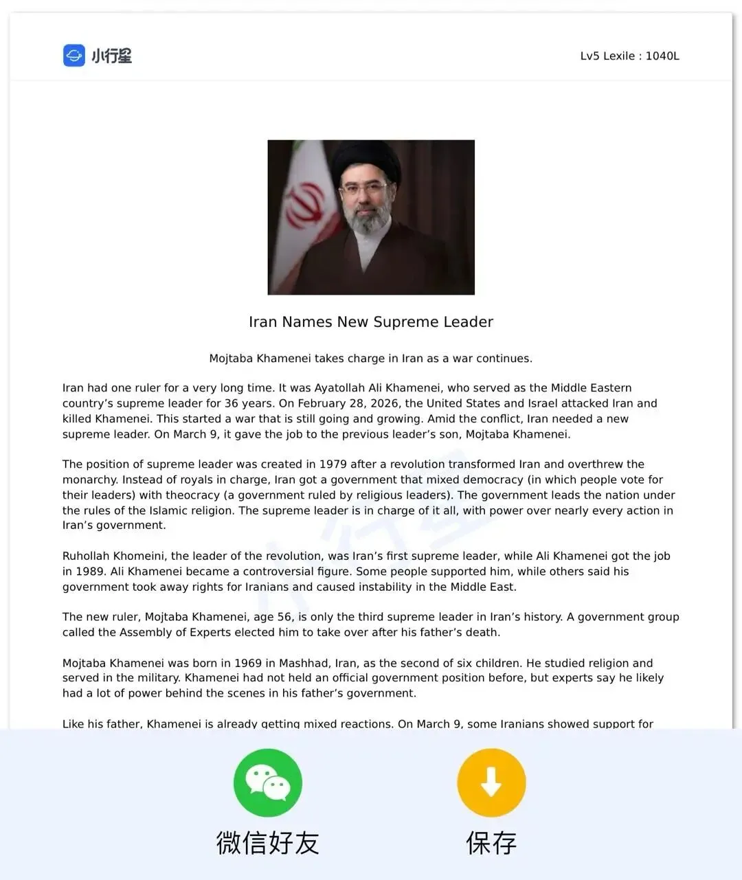 她测试下来后,给孩子选了L1级别(蓝思300L-450L),发现小行星有个设计特别好:每篇新闻开头都有实拍的图片或视频引入,都是实拍的,特别有感染力。
