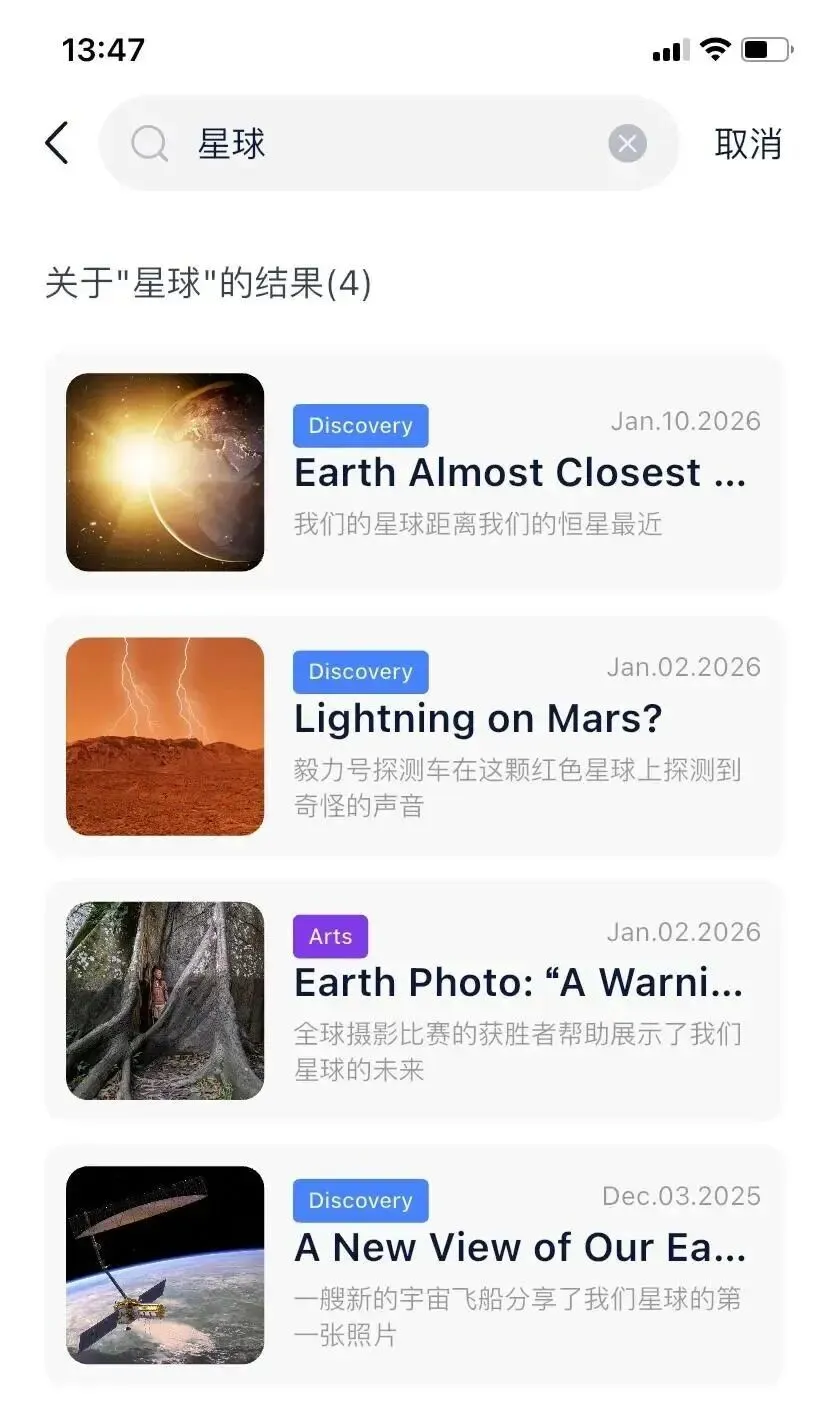 比如,搜索“星球”两个字,往期相关内容调取出来。不用在一堆信息里翻找,直接定位,省时省力。集中学一类,也可以提高学习的效率。