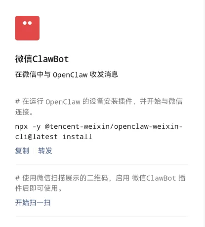 npx -y @tencent-weixin/openclaw-weixin-cli@latest install