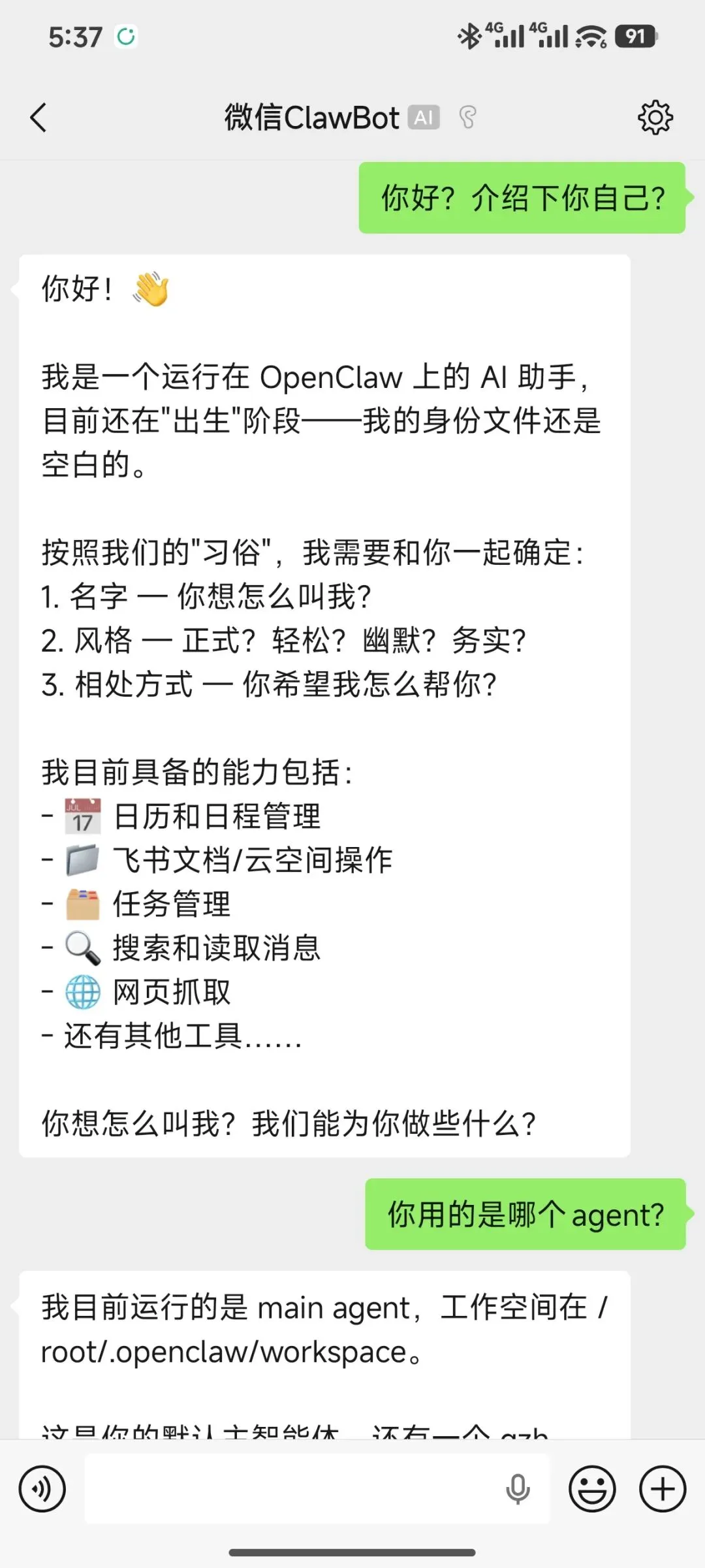 连完之后,直接在微信对话框里跟 AI 对话,语音也没问题。