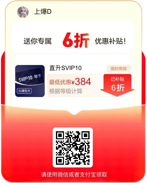 原价298的SVIP年卡,新用户只要【188】!月卡只要【18】!