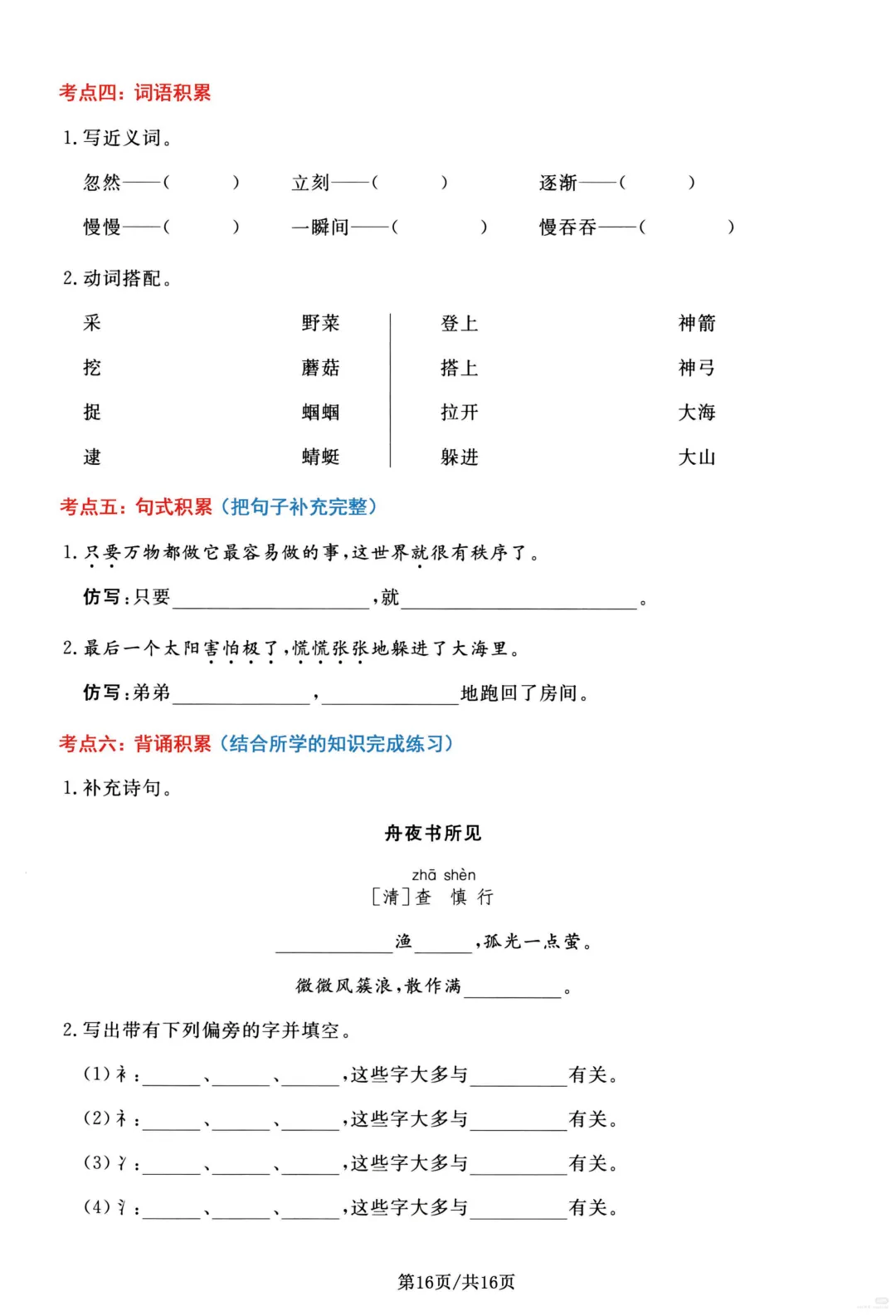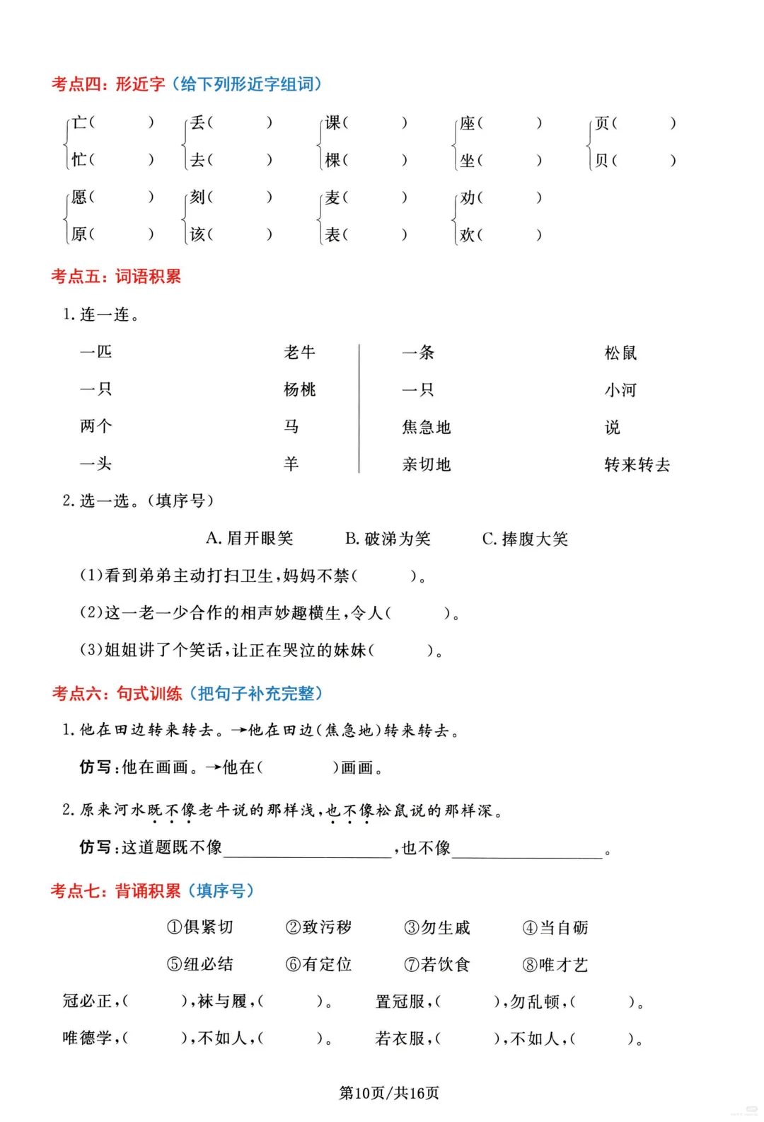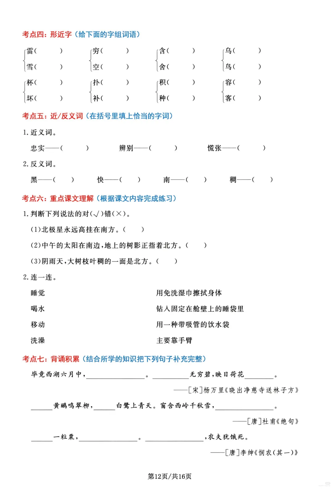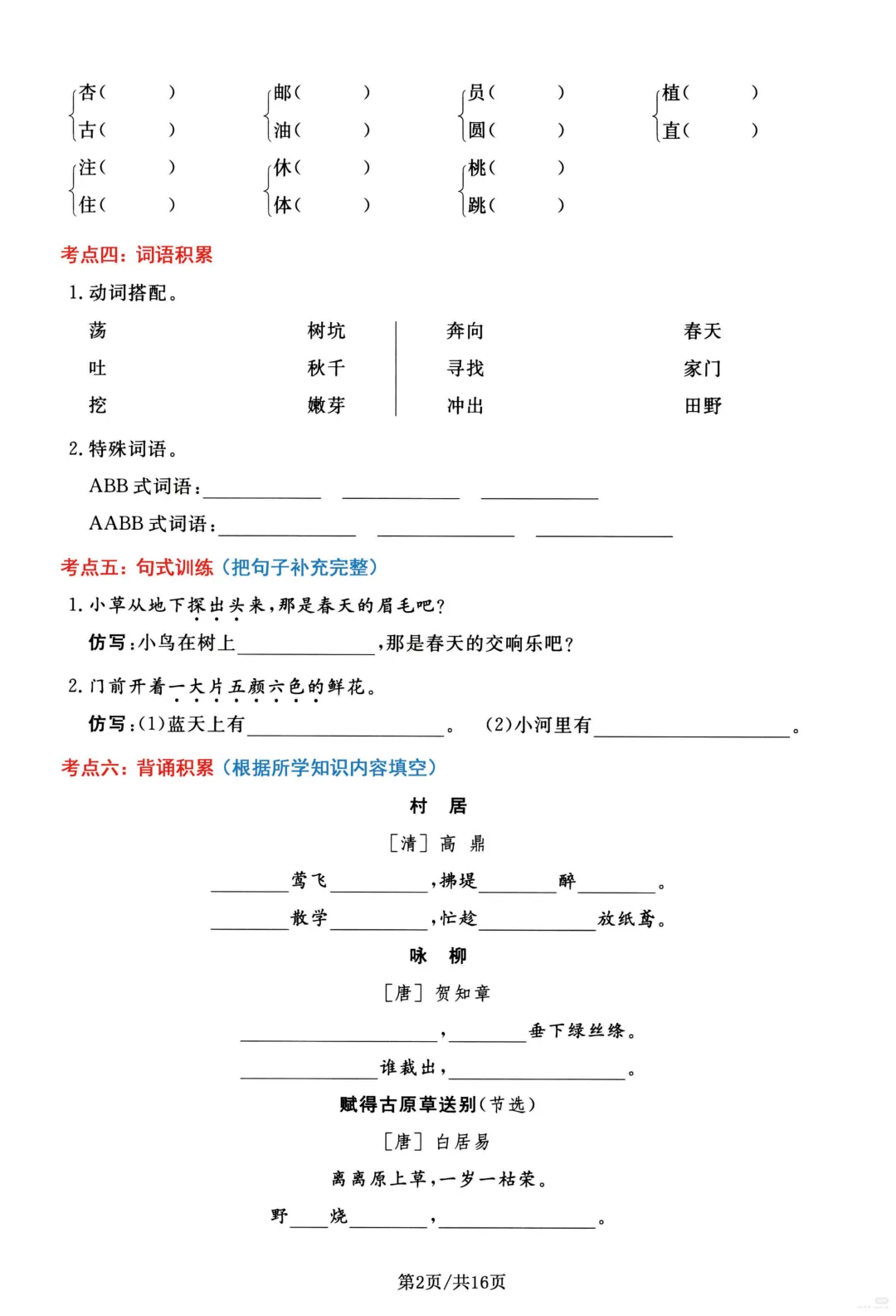 26春部编版二年级下册语文1-8单元高频考点通关练习(含答案)共16页;可打印