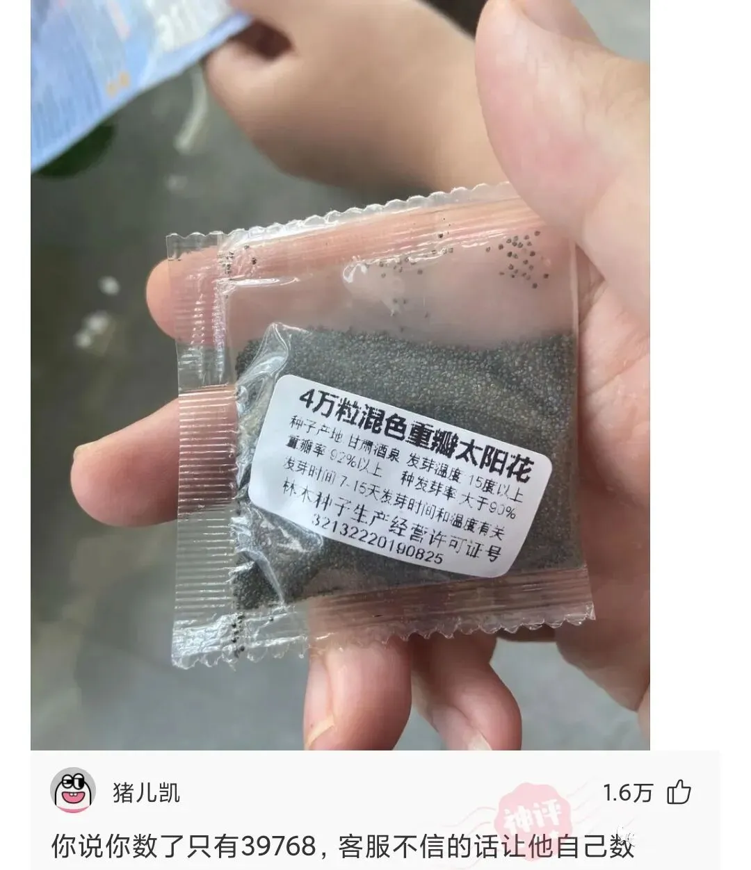 这个种子我感觉没有4万粒,我去找客服,他竟然说让我去数一数!