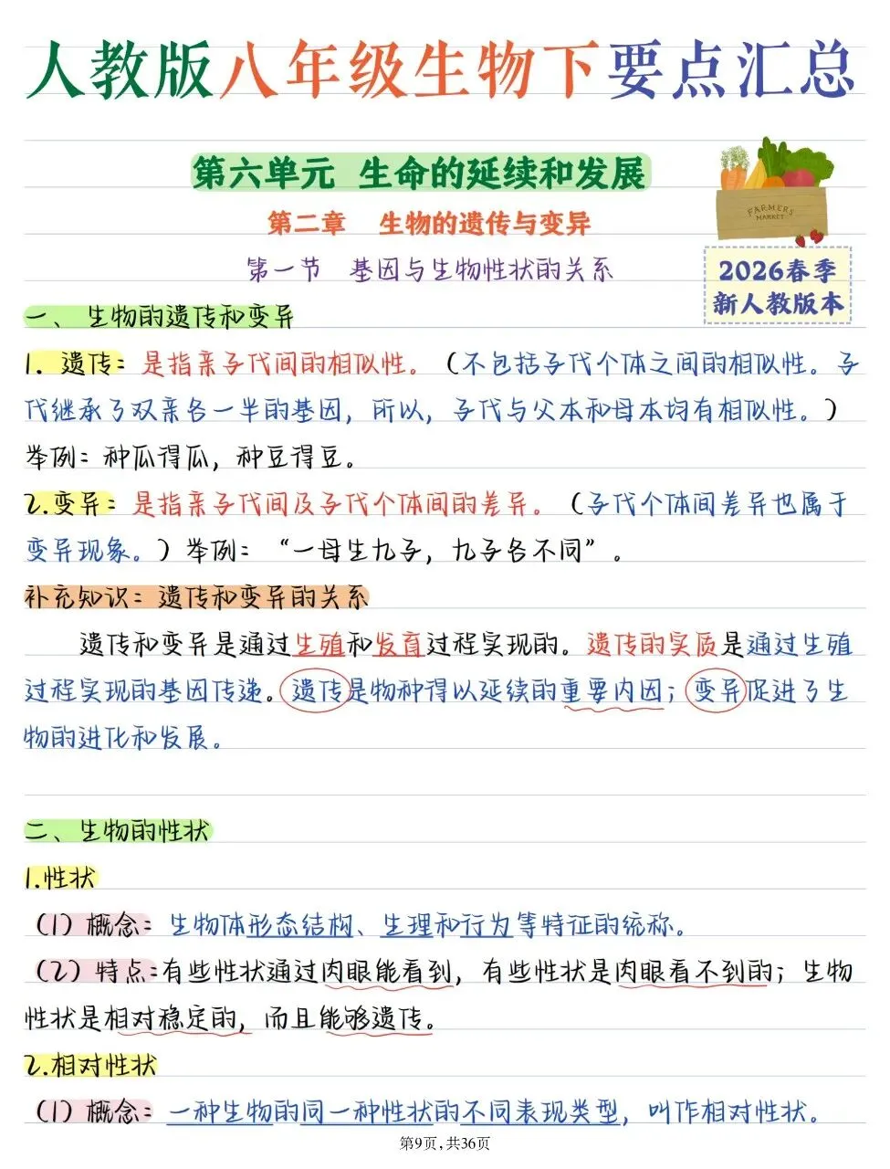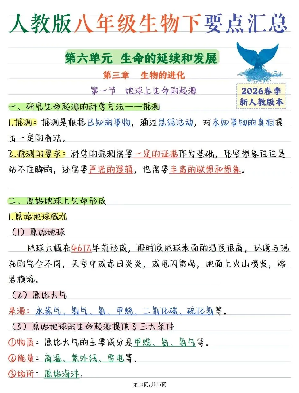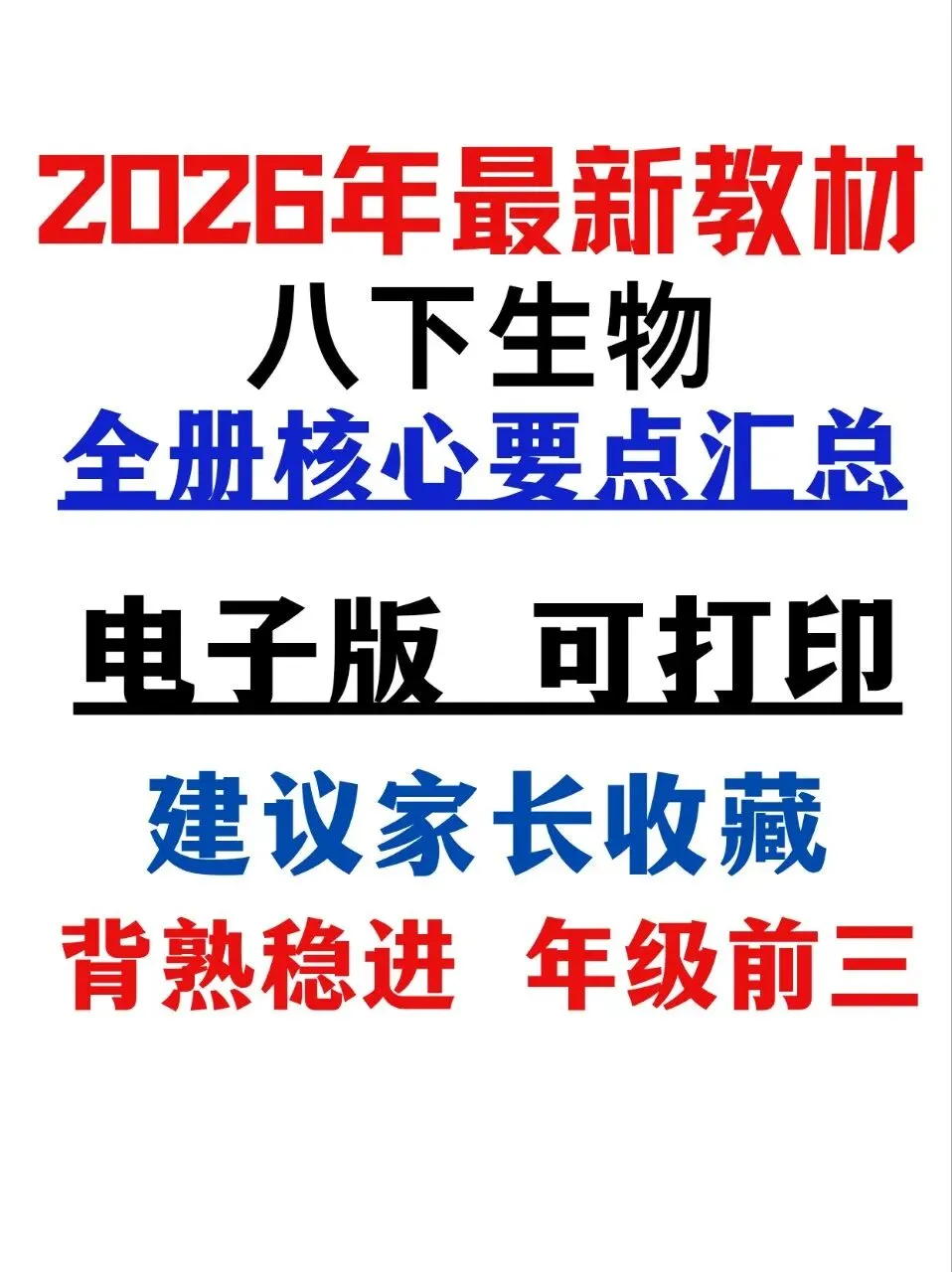 八年级下册生物内容多、考点碎,很多同学越学越乱,考试总丢分。别再盲目翻书刷题了,老师精心整理的2026最新教材版——八下生物全册核心知识点汇总,就是提分捷径!