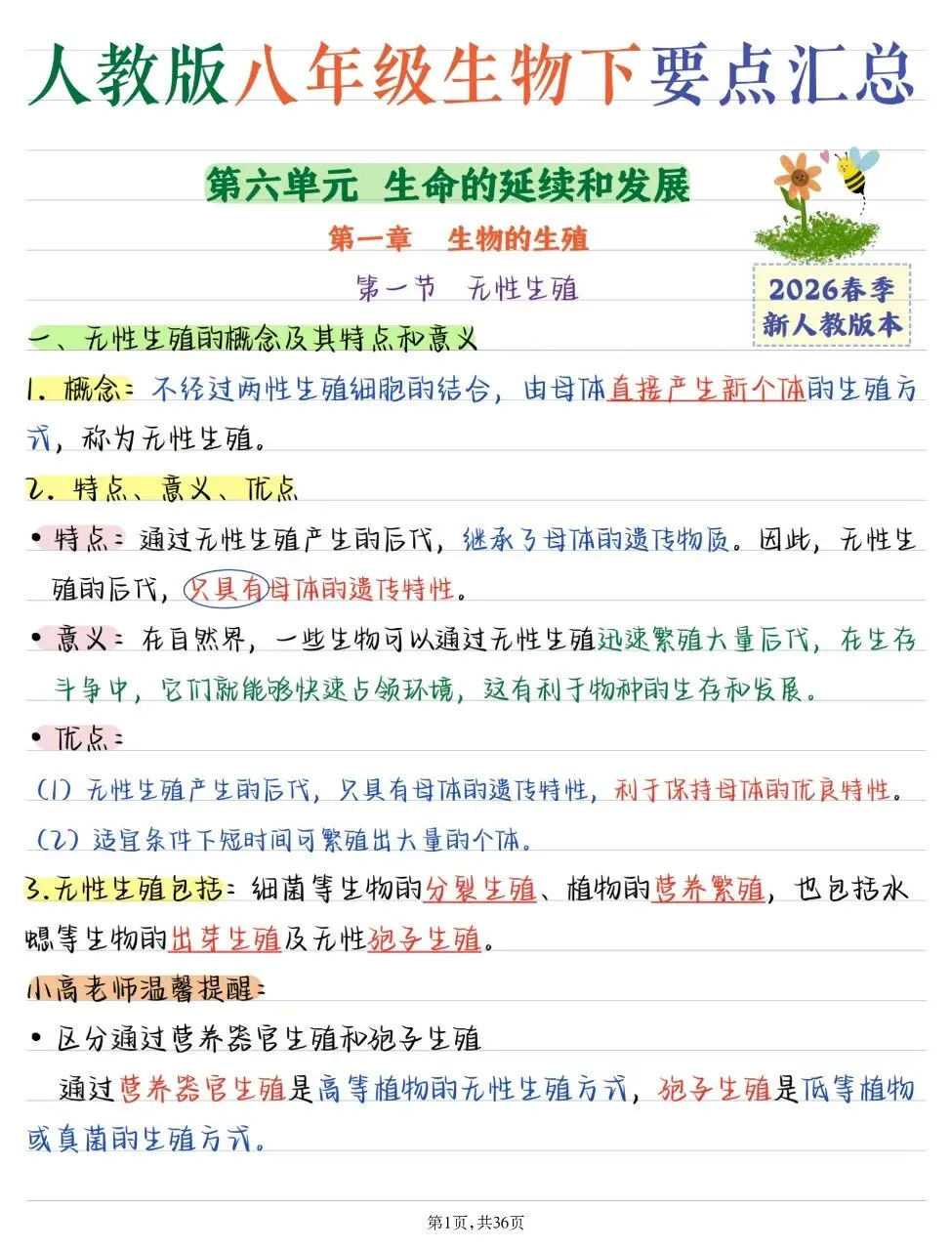 2026年最新版八年级下册生物全册核心要点汇总 有完整电子版可打印,学霸学习好帮手,建议家长打印,学霸人手一份!