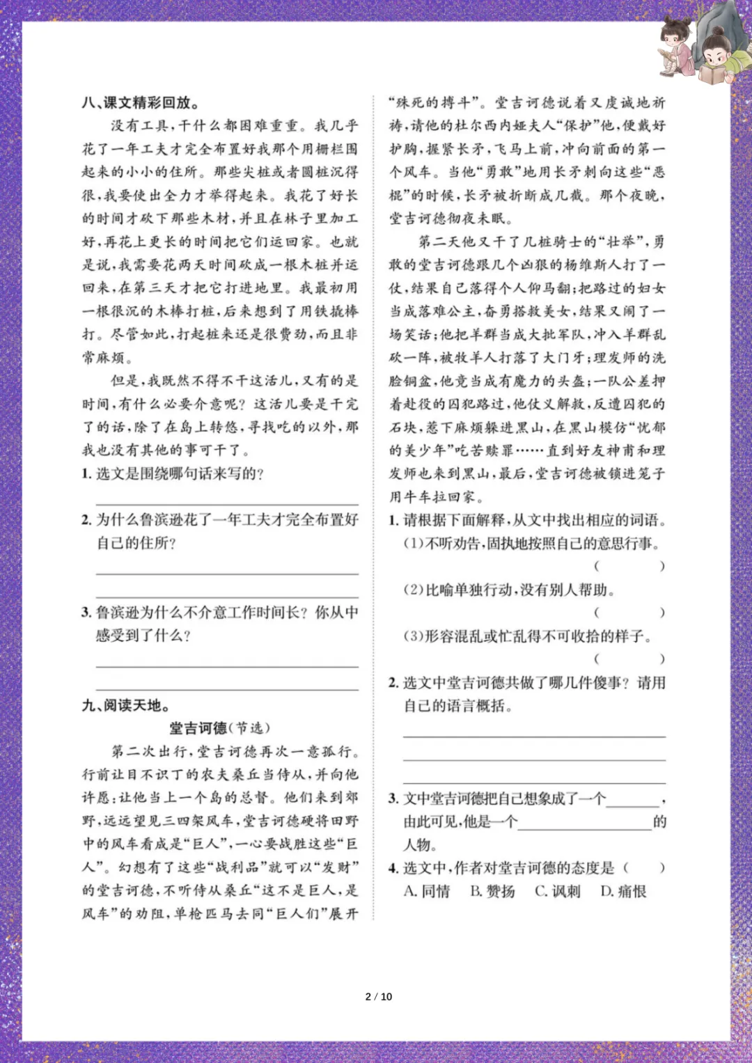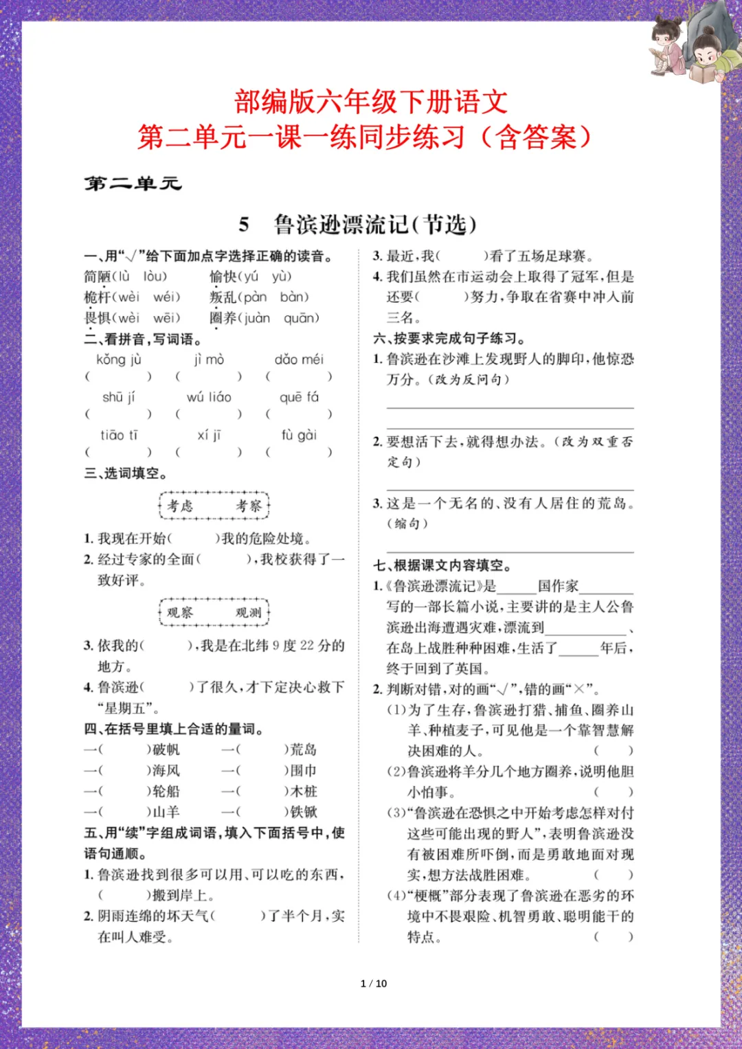 部编版六年级下册语文:第二单元一课一练同步练习(含答案)电子版可下载打印