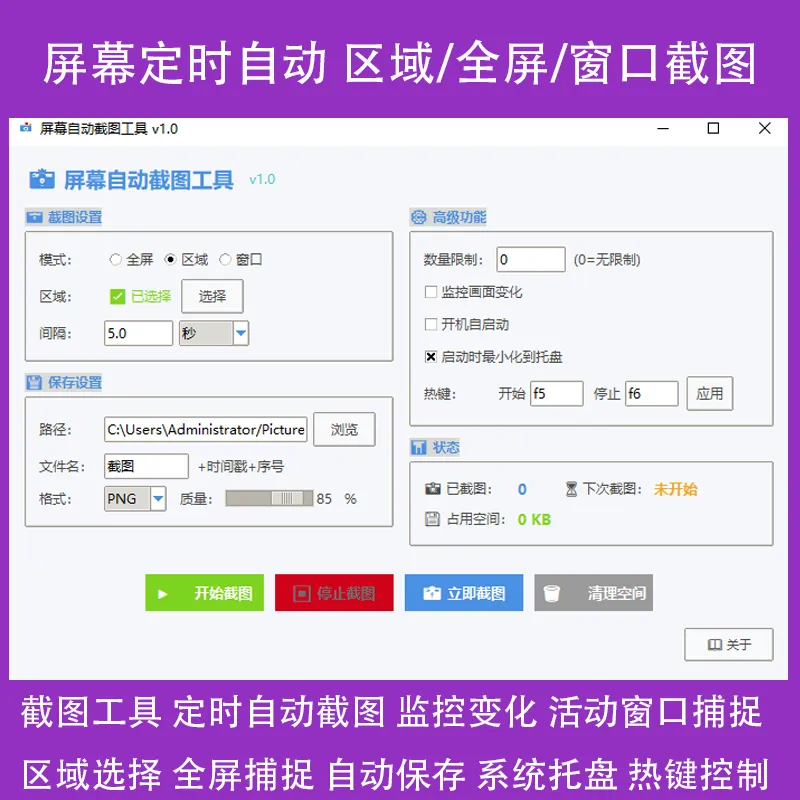 顺便说一下,你所有的设置——保存路径、截图模式、时间间隔——它都记住,下次打开直接用。
