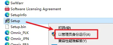 3.找到并选中“Setup”安装程序,右键选择“以管理员身份运行”