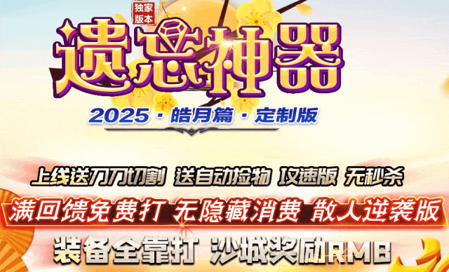 【复古遗忘神器激情版】满回馈可打,全屏地钉,火墙,吸怪,无限刀,六个大陆,80多套装备,装备全靠爆!