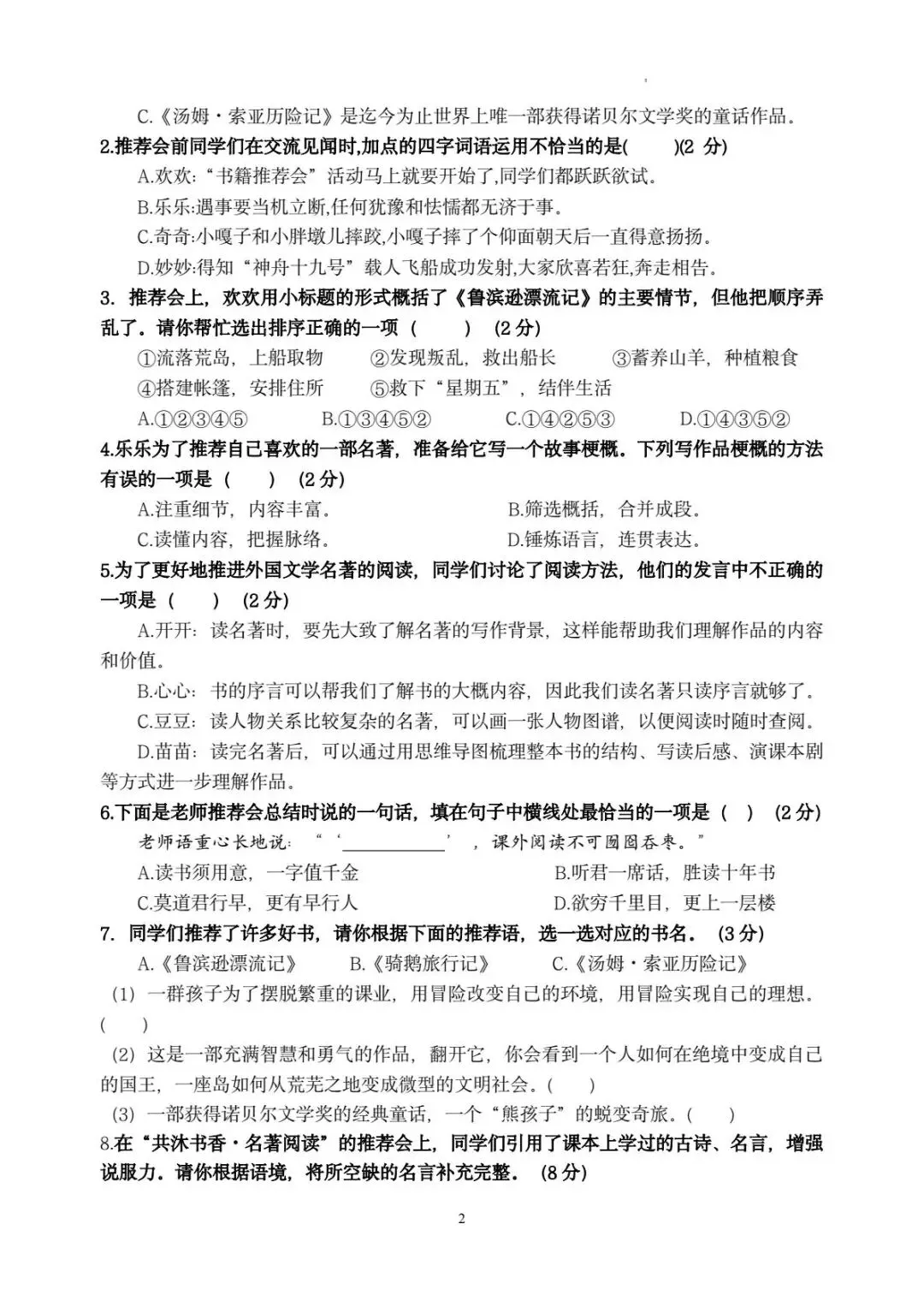 2026春新版人教部编版六年级下册语文《第二单元检测试卷共4套 含答案》 高清可打印!
