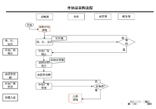 采购人员根据采购计划,判断物资是否需要外协采购,如需外协采购,进行询价、比价、议价流程;
