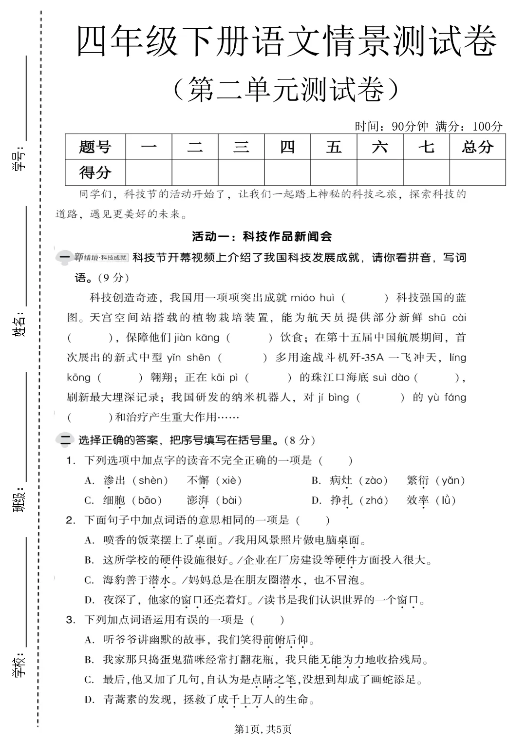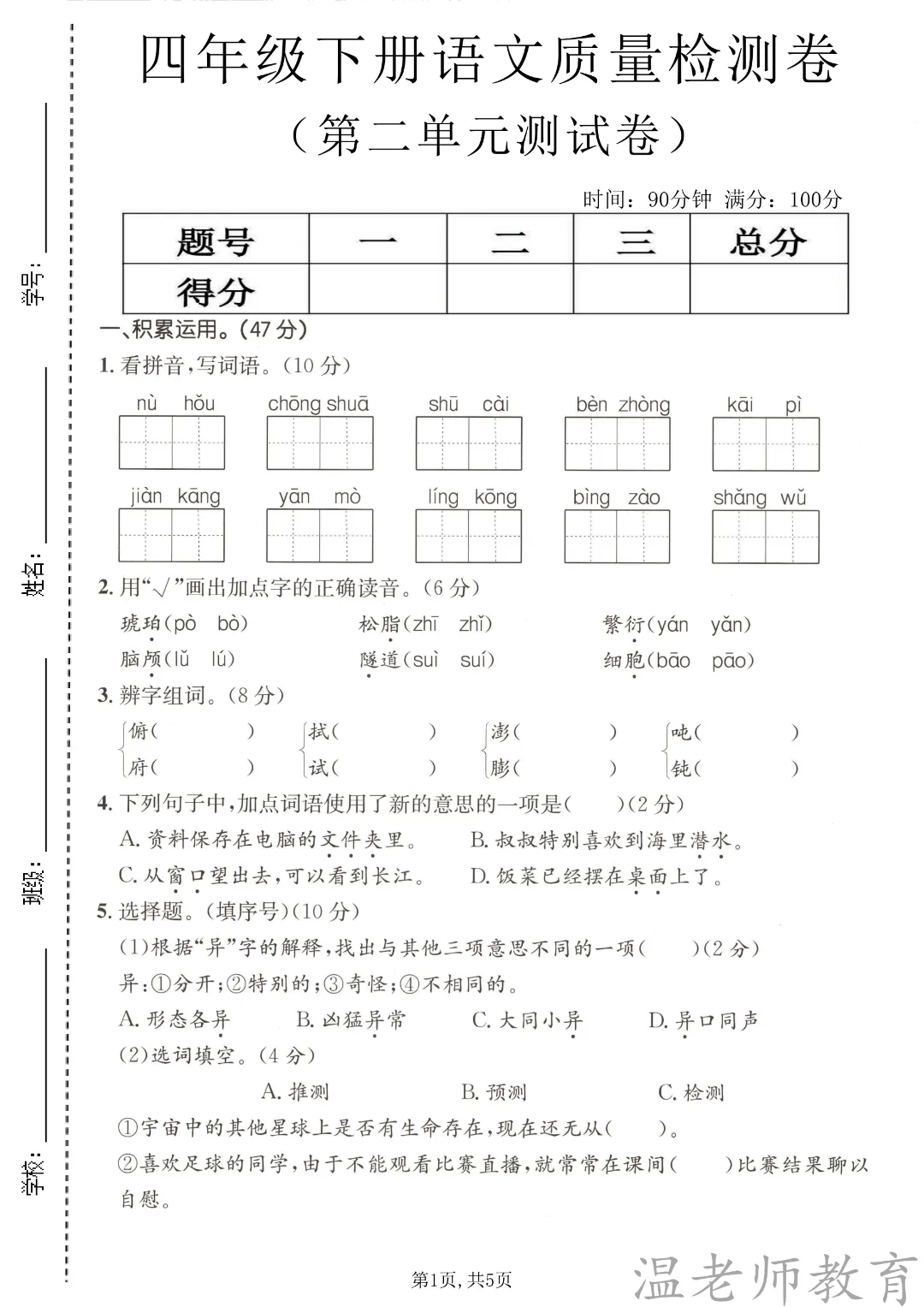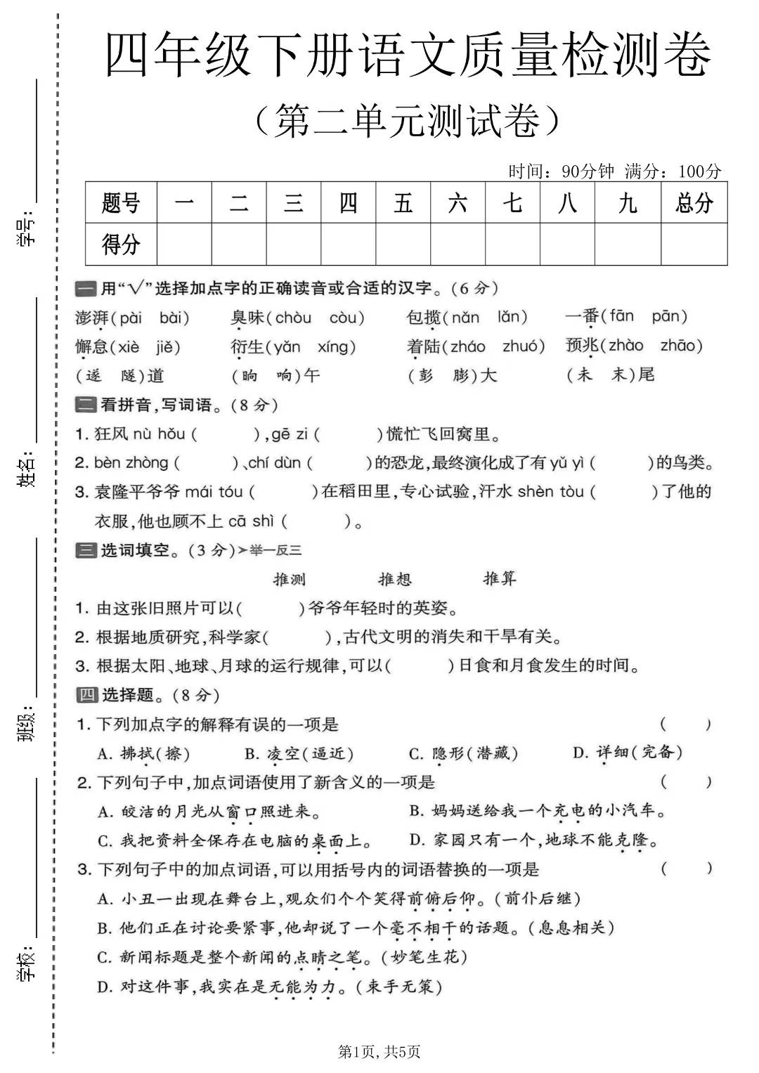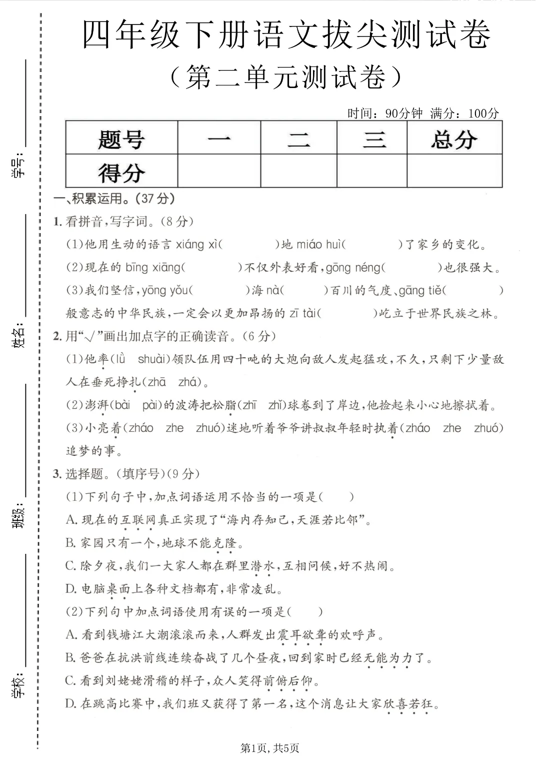 ⭐26春·人教部编版四年级下册语文《第二单元测试卷共3套 附答案》 电子版可打印!精准检测第二单元知识点掌握情况,快速抓紧薄弱点,帮孩子熟悉考试题型找到答题节奏,适应正式测试,及时巩固单元重点,避免知识漏洞积累。有需要的家长抓紧领取一份打印出来🖨️给孩子练一练吧✍欢迎分享到班群或朋友圈,方便家长打印出来助力更多孩子高效学习💪!