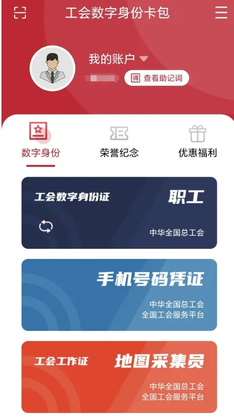 ▲工会数字身份卡包