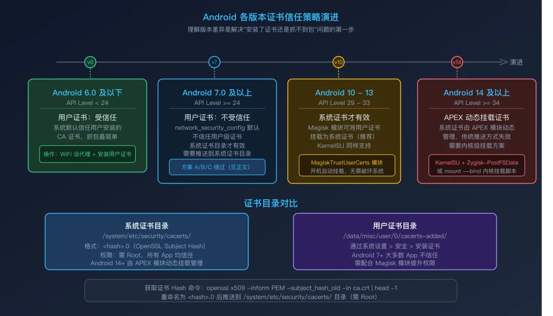 四、核心分水岭:Android 系统版本与证书信任策略 -