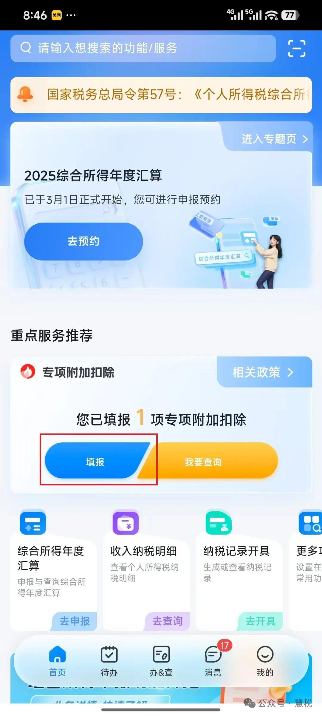 2025年度个人所得税综合所得汇算清缴已于2026年3月1日正式开始,为此慧税研究院为每位纳税人送出一本《个人所得税APP操作手册(2026版)》,愿您在阅读后能够正确、顺利完成2025年度汇算清缴纳税申报。(本操作适用个人所得税APP版本号为2.2.8,请读者及时将软件升级至最新版本)
