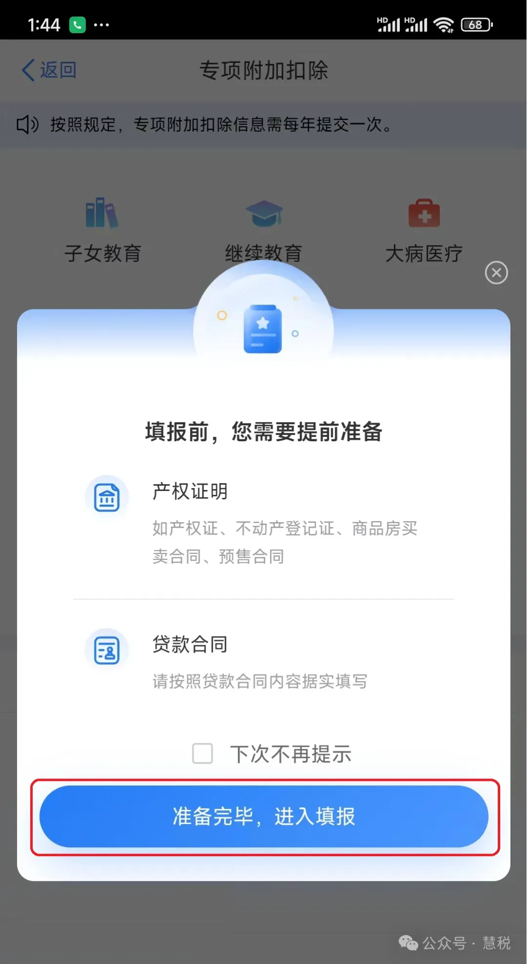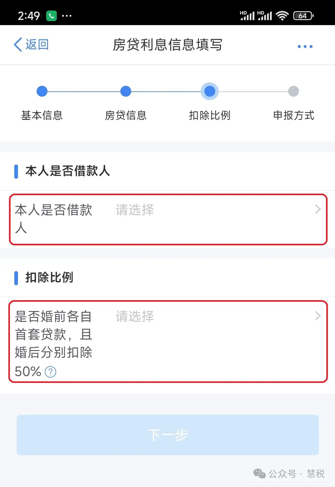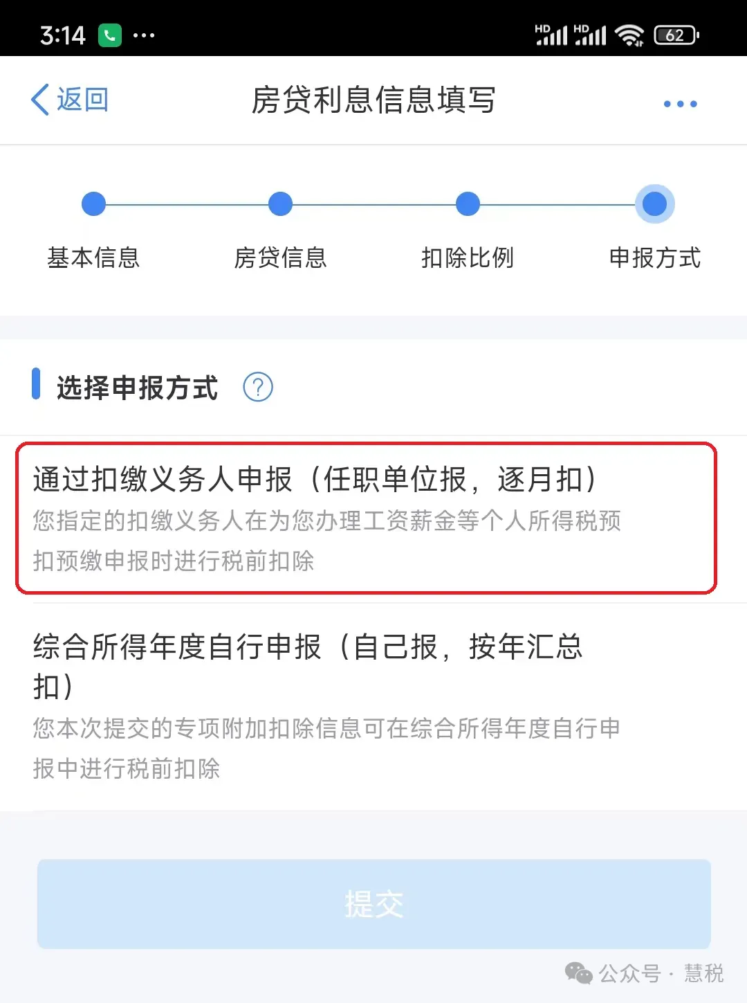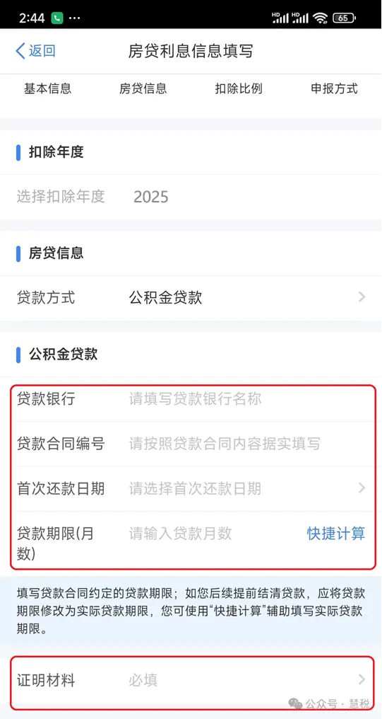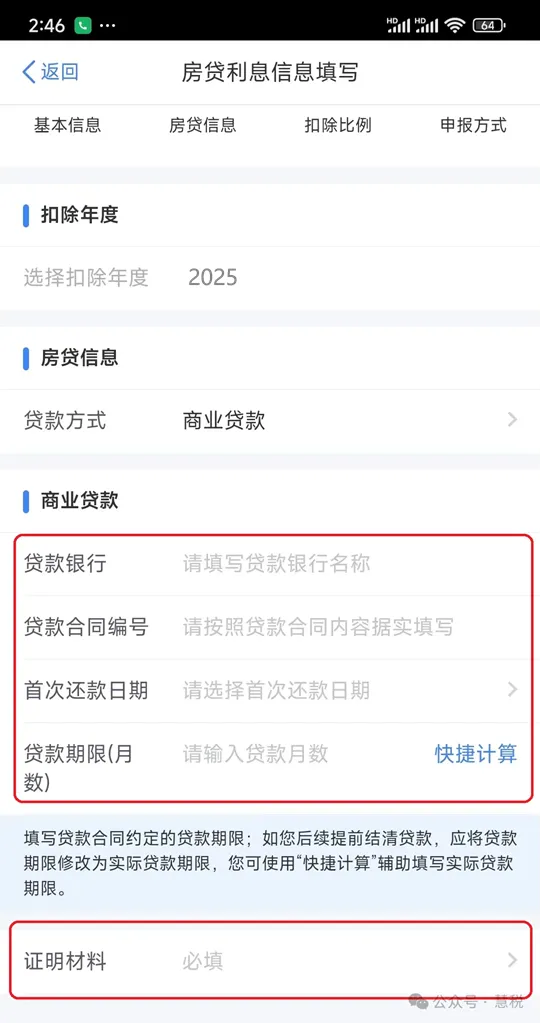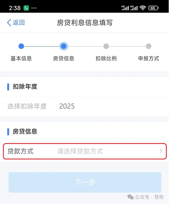 (6)“房贷利息信息填写”页,“申报方式”选择确认