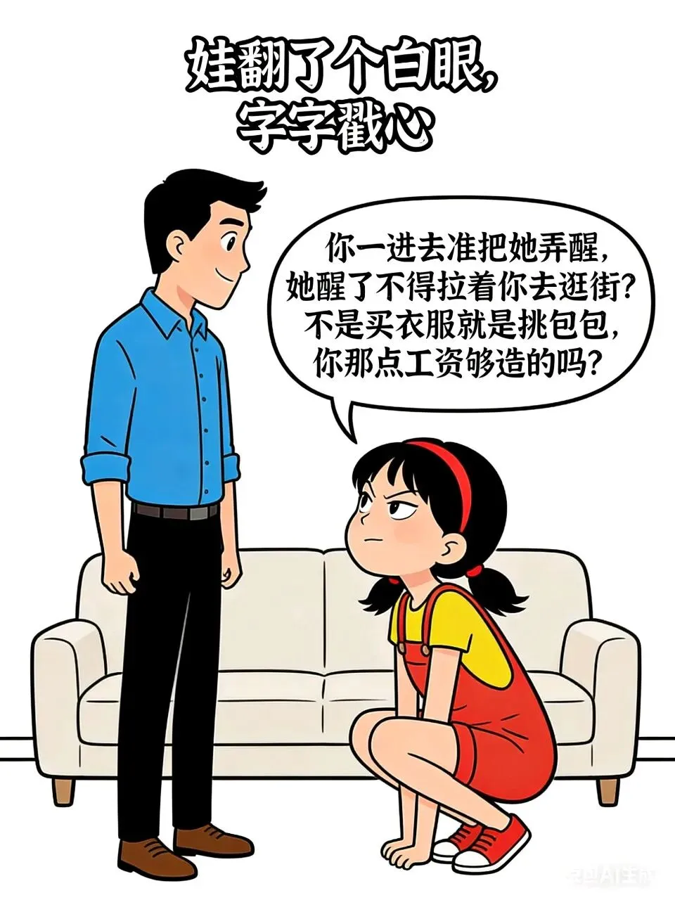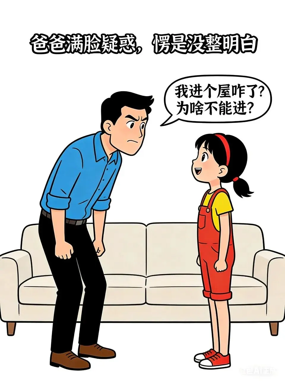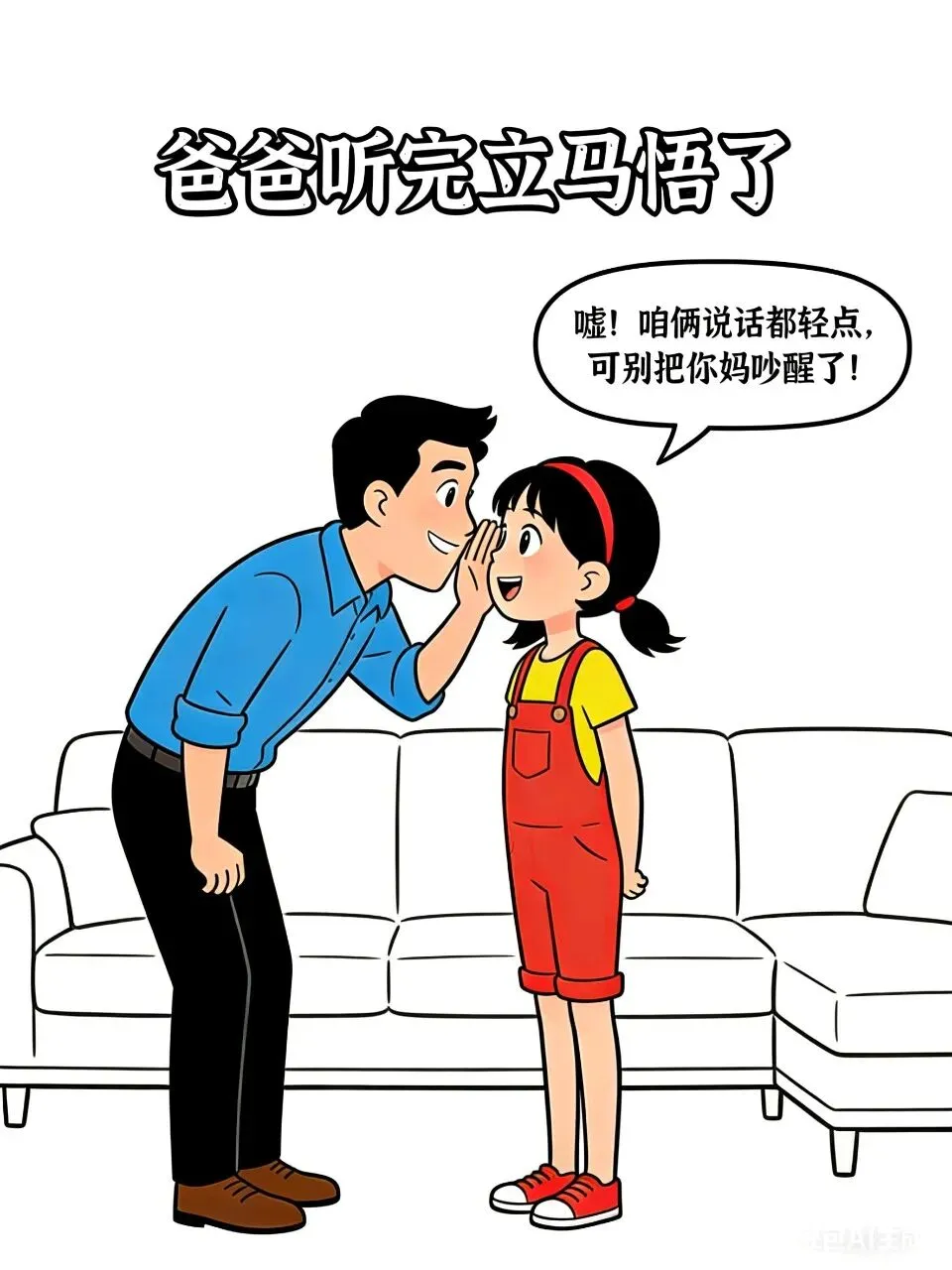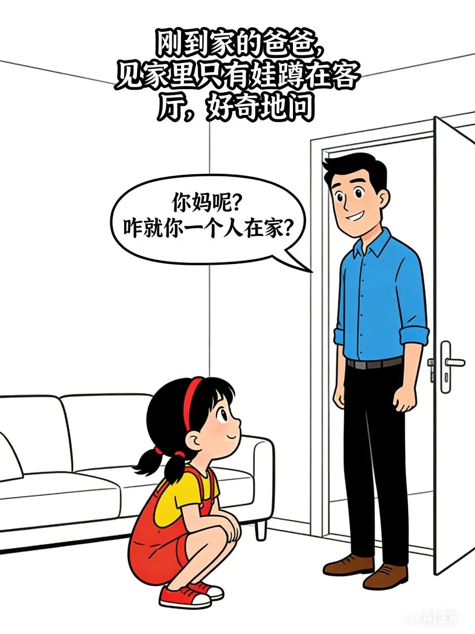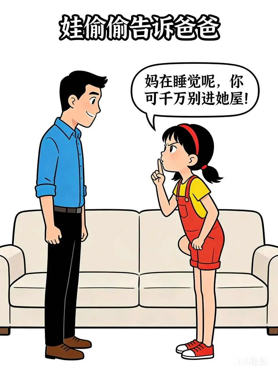 搞笑漫画:爸爸:你妈呢?咋就你一个人在家?娃:妈在睡觉呢,你可千万别进她屋!爸爸:我进个屋咋了?为啥让进?