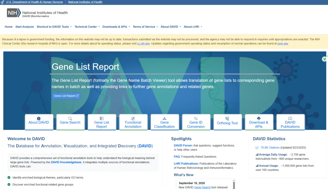 不过,对于以经典通路分析、验证已知生物学功能为核心目标,且对数据库时效性要求不高的课题,DAVID 仍有一定使用价值 —— 毕竟其长期积累的行业认可度,让部分期刊审稿人对其结果接受度较高。但从长远来看,依赖一款 “停滞更新” 的工具,并非科研最优解。