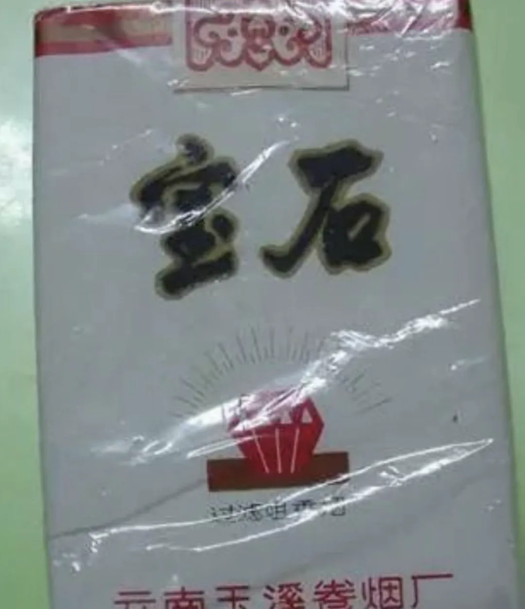这款正面宝石logo的盒子叫宝石香烟,玉溪烟厂出品,没听过也不要紧,反正人家家的红塔山、玉溪,哪个老烟民不认识,就是这盒子在当时有点低调,抽得不多,见过的人便多一分谈资。