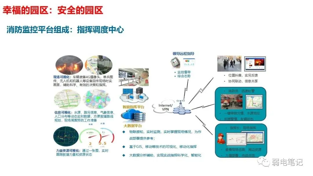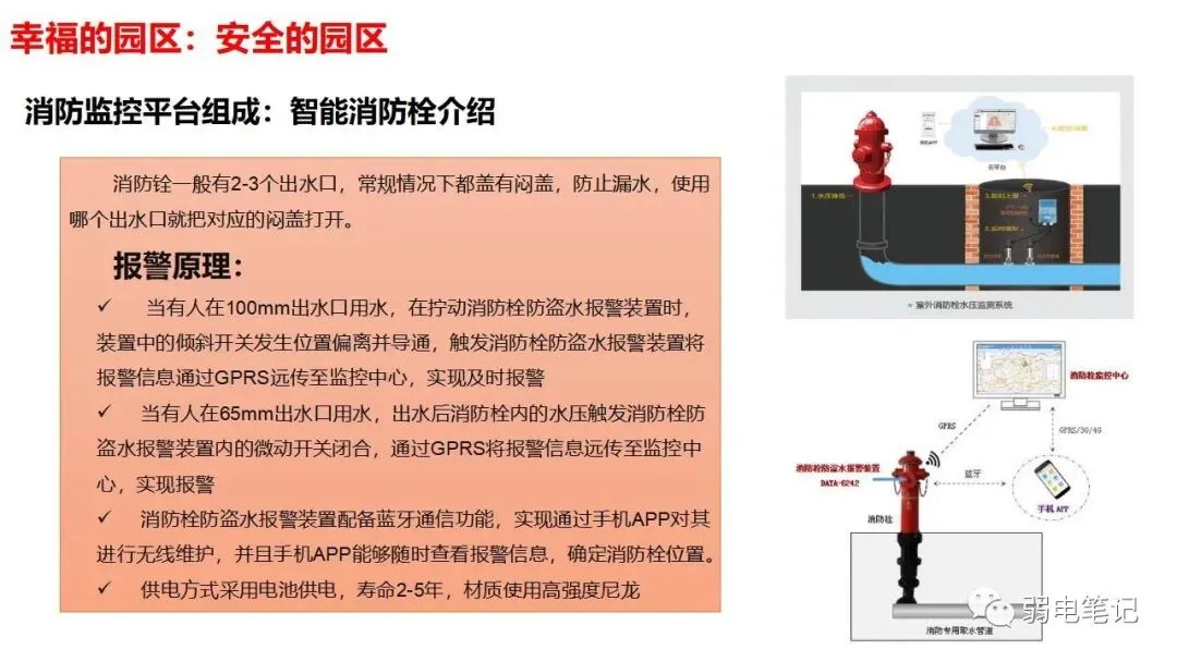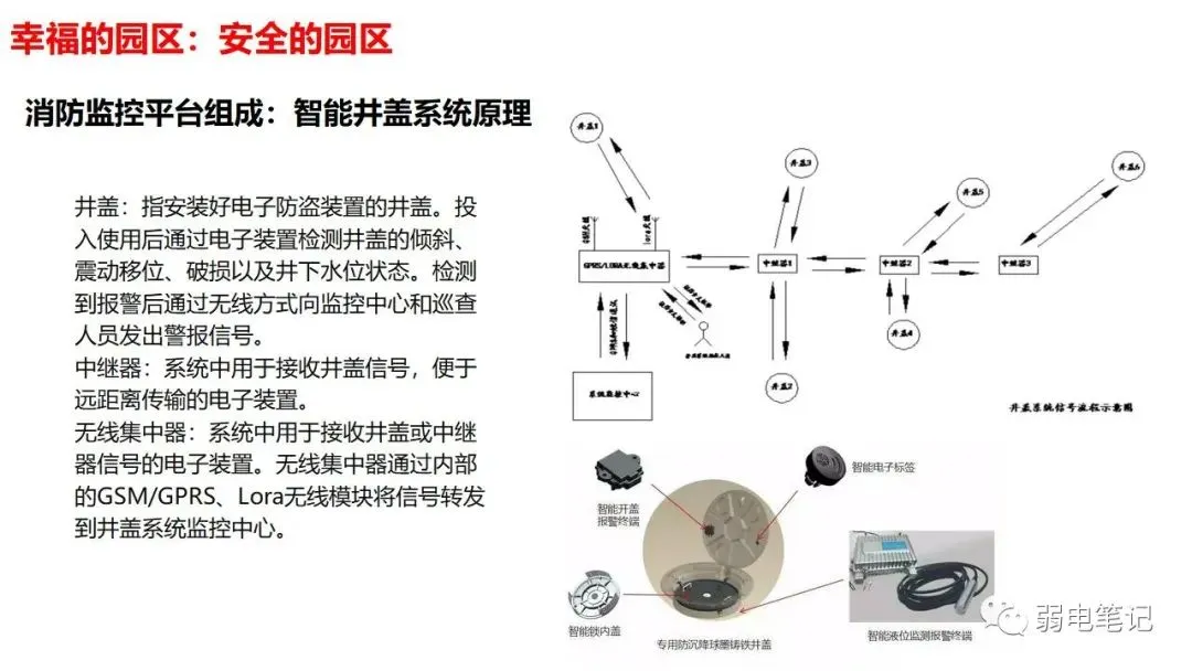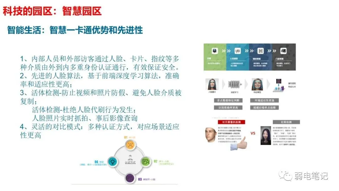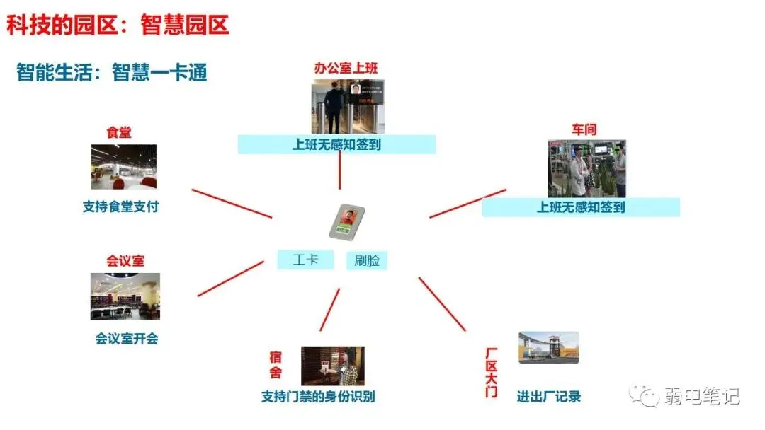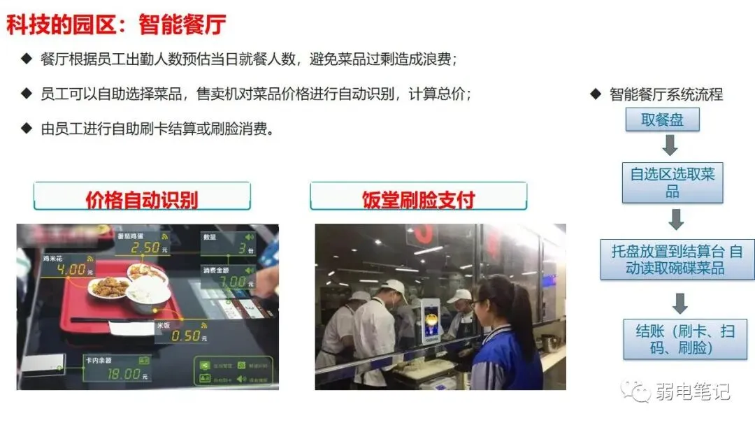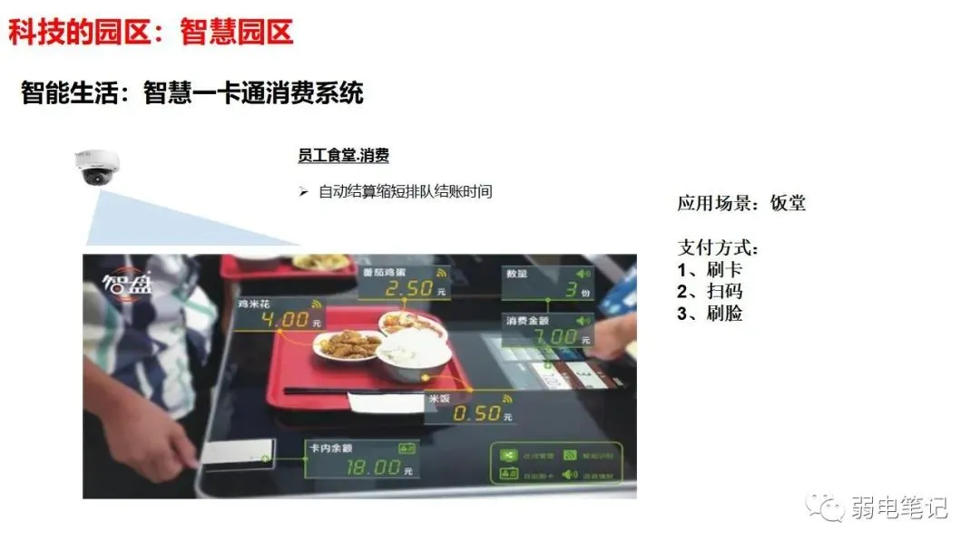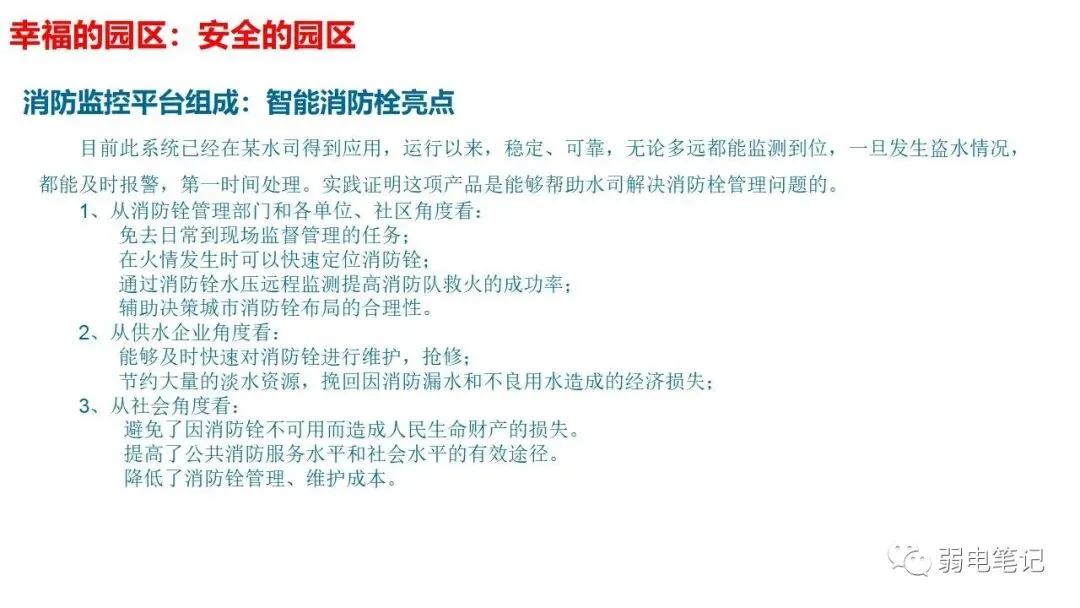 本方案设计应用于某高档园区,在设计中采用了较多的行业新技术新产品。包括物联网技术的智慧餐厅、智慧消防、智慧一卡通、智慧停车、智慧井盖等。