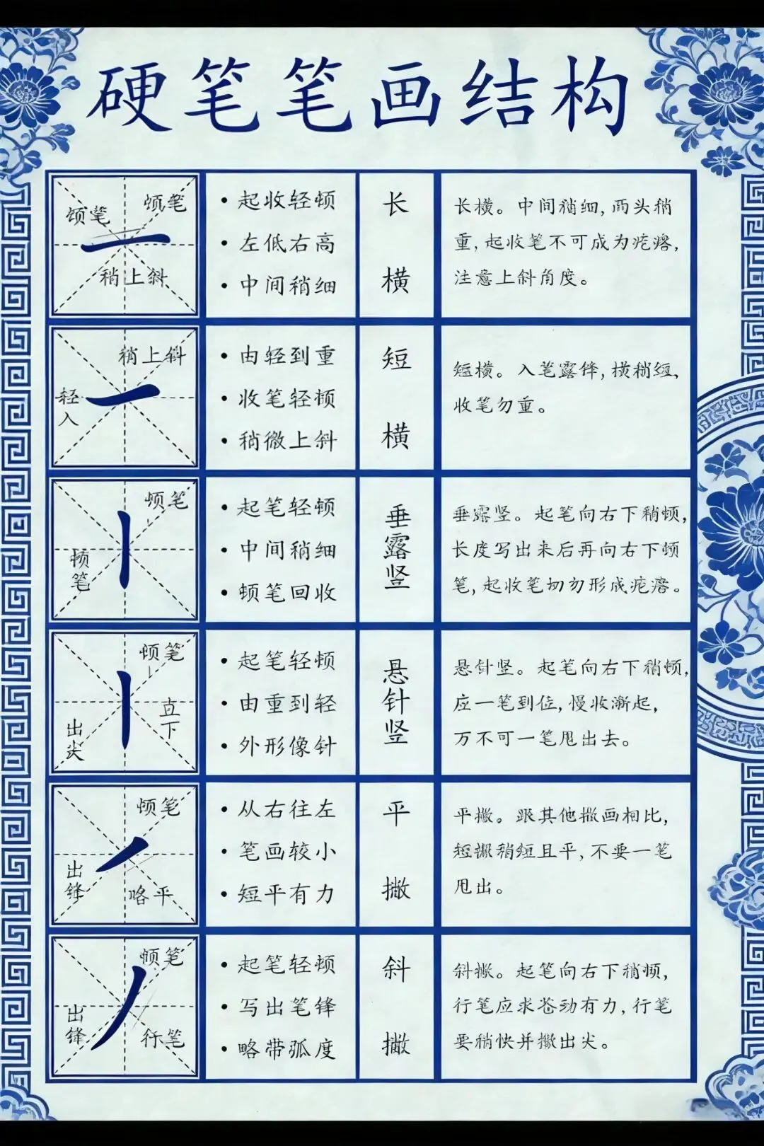 合集:硬笔楷书的笔画怎么写?练字无捷径,基础笔画练到极致就赢了