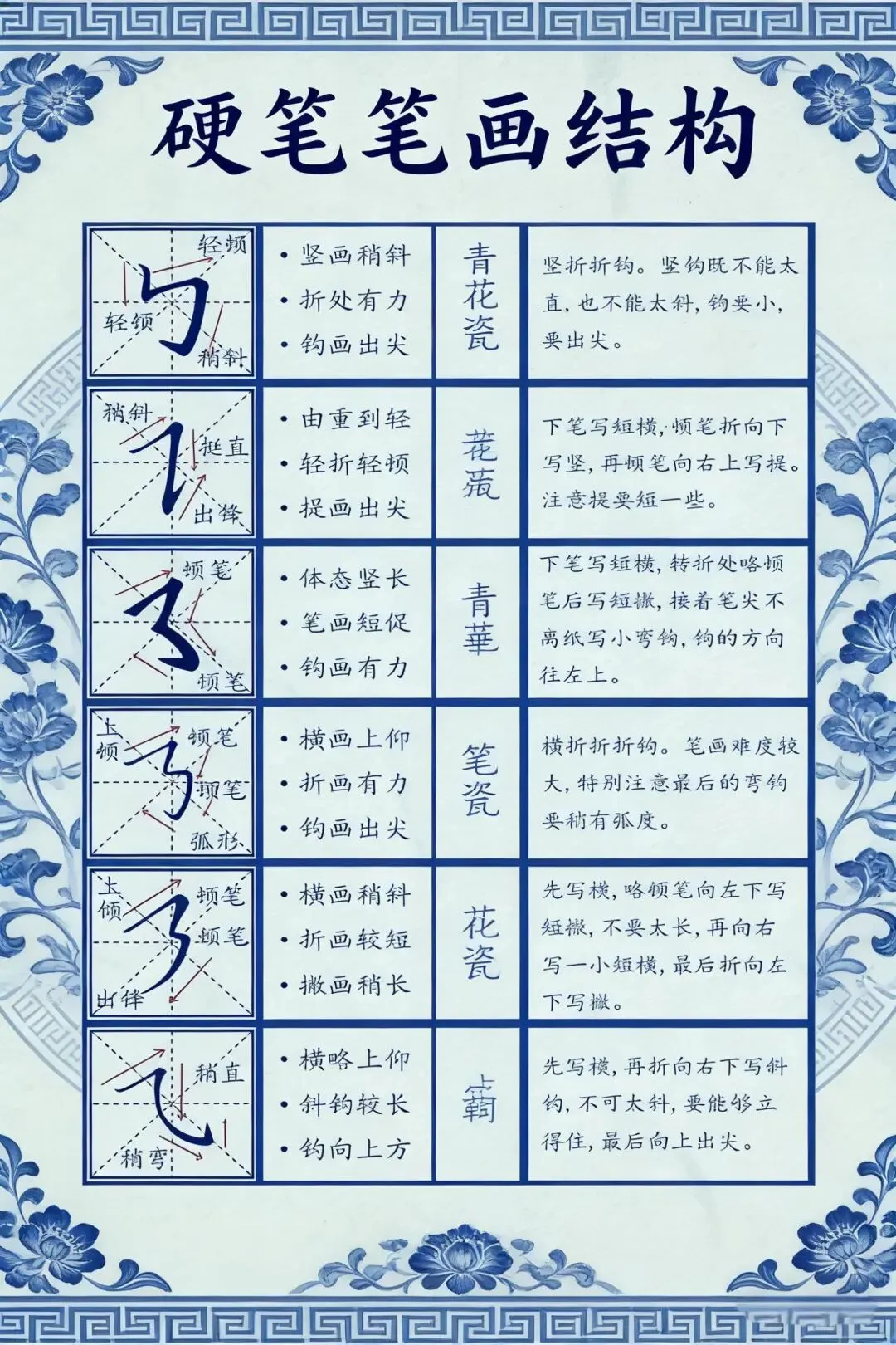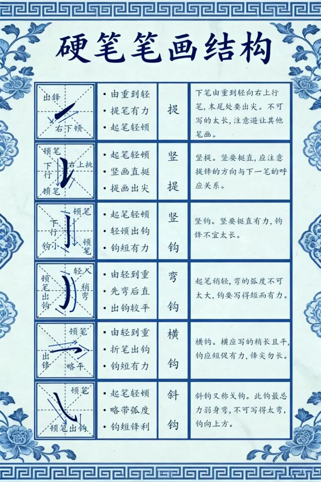 硬笔书法的根基从横竖撇捺钩开始,把基础笔画写标准,汉字骨架自然立得住,这套硬笔基本笔画练习卡,专为新手打造,拆解超细致。