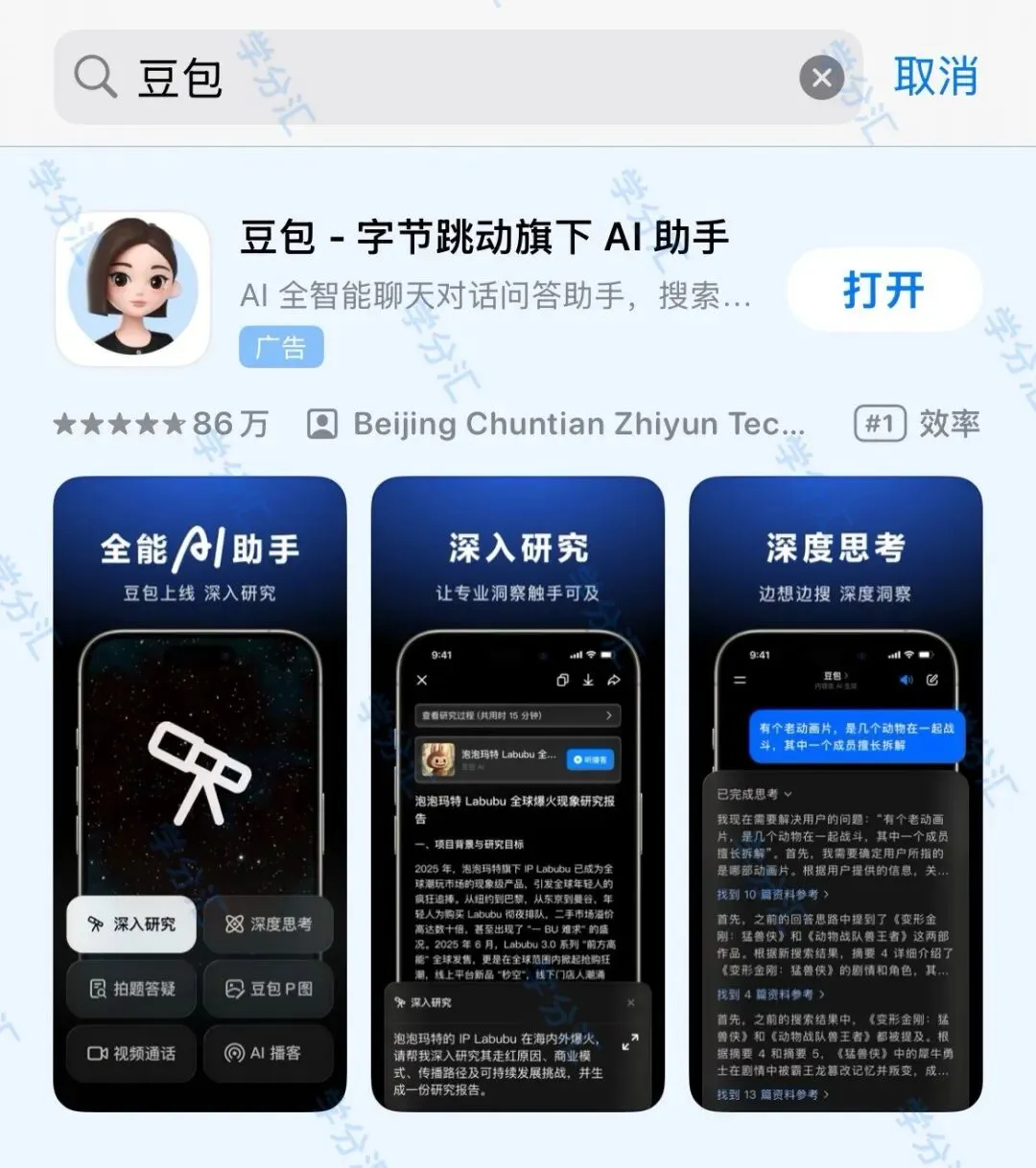 这里,只简单的使用字节跳动旗下的软件“豆包”举例,其他还有很多工具也可以使用,比如Deepseek,夸克,百度等,方法大同小异。