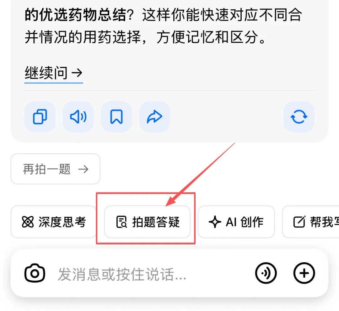 2:准备好需要搜索的题目,打开“豆包”App,下方有“拍题答疑”,可点击打开