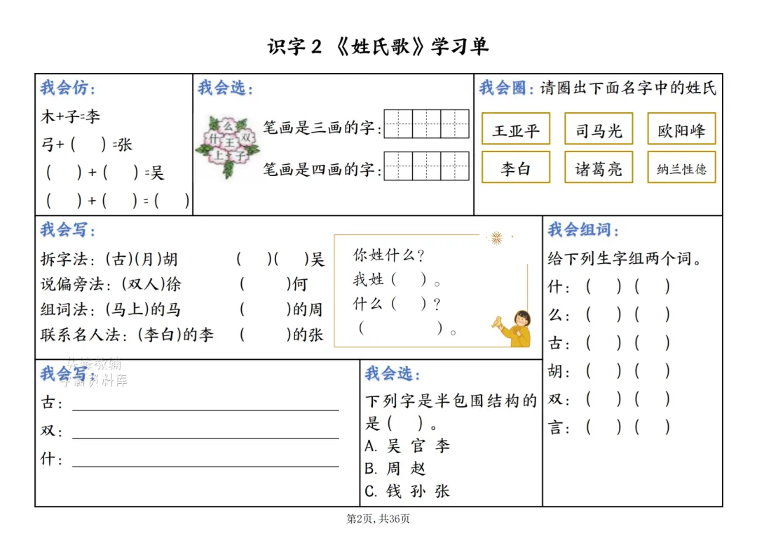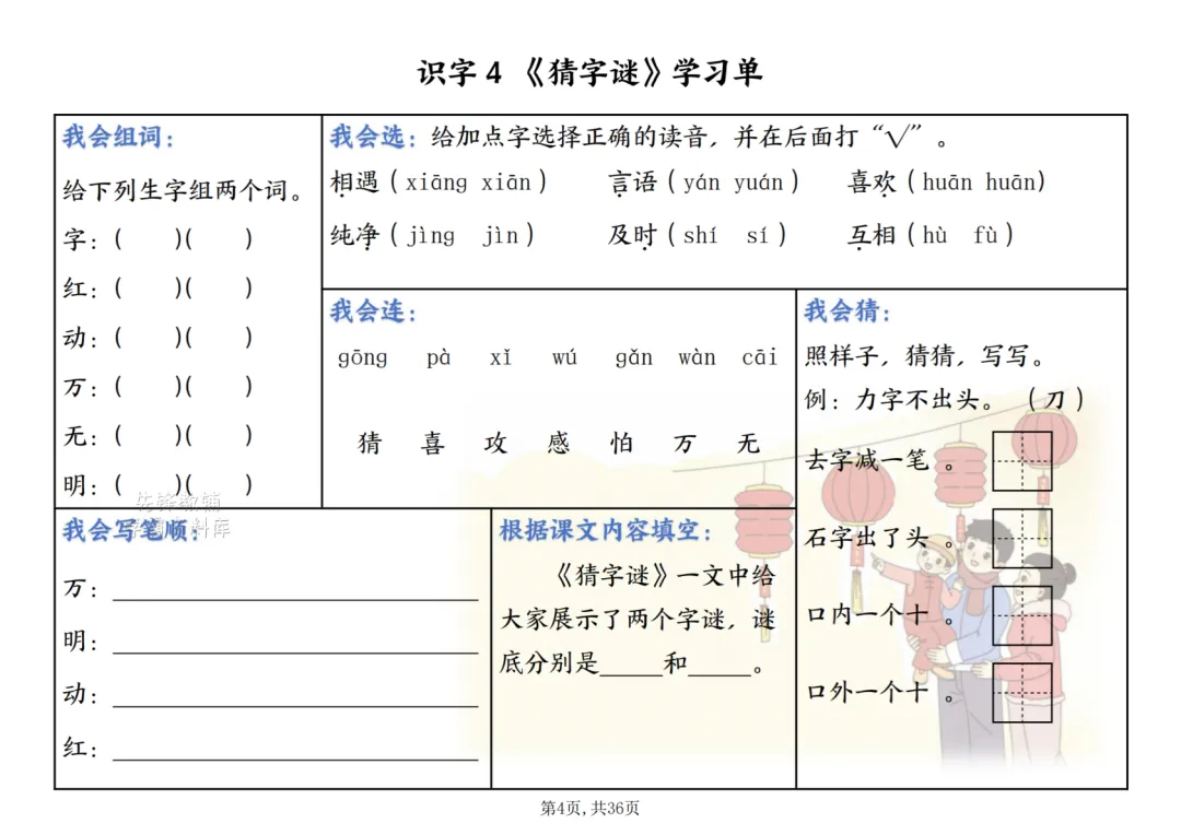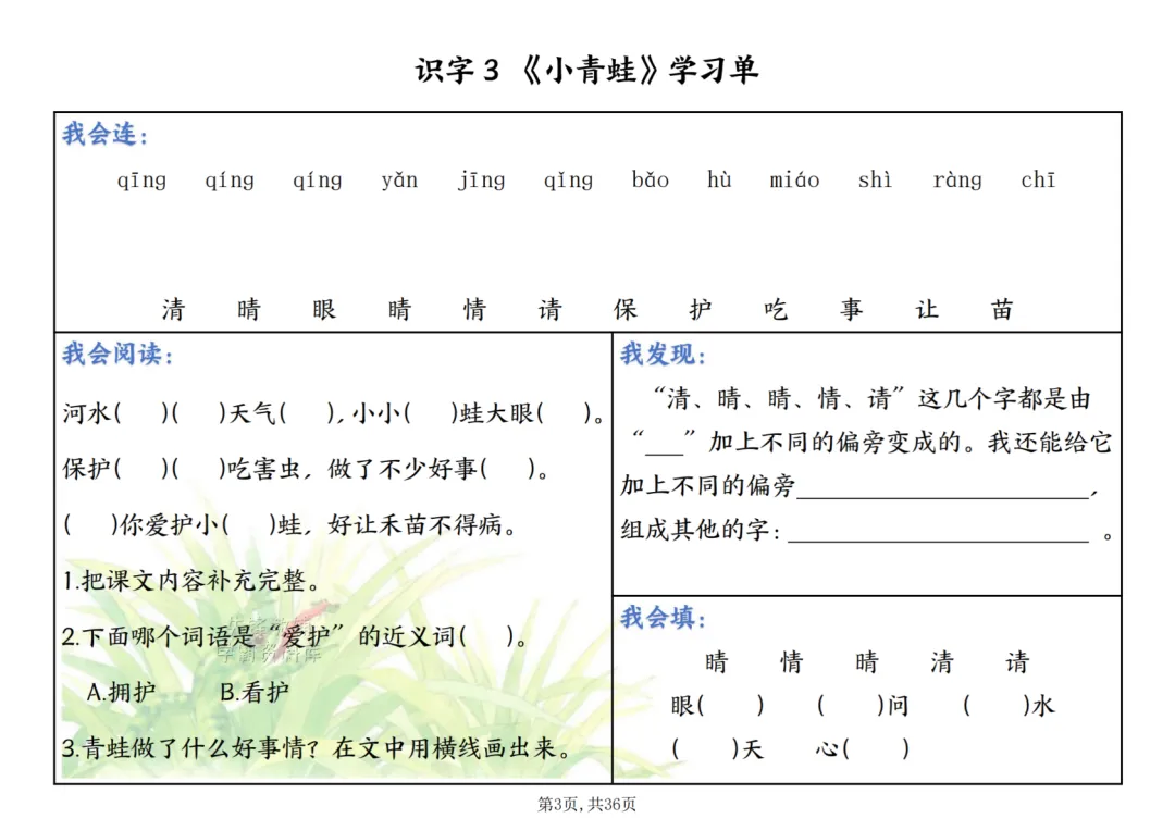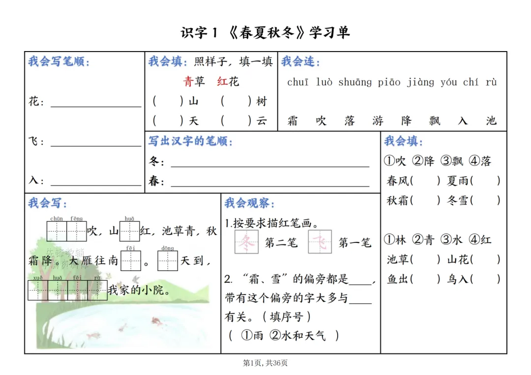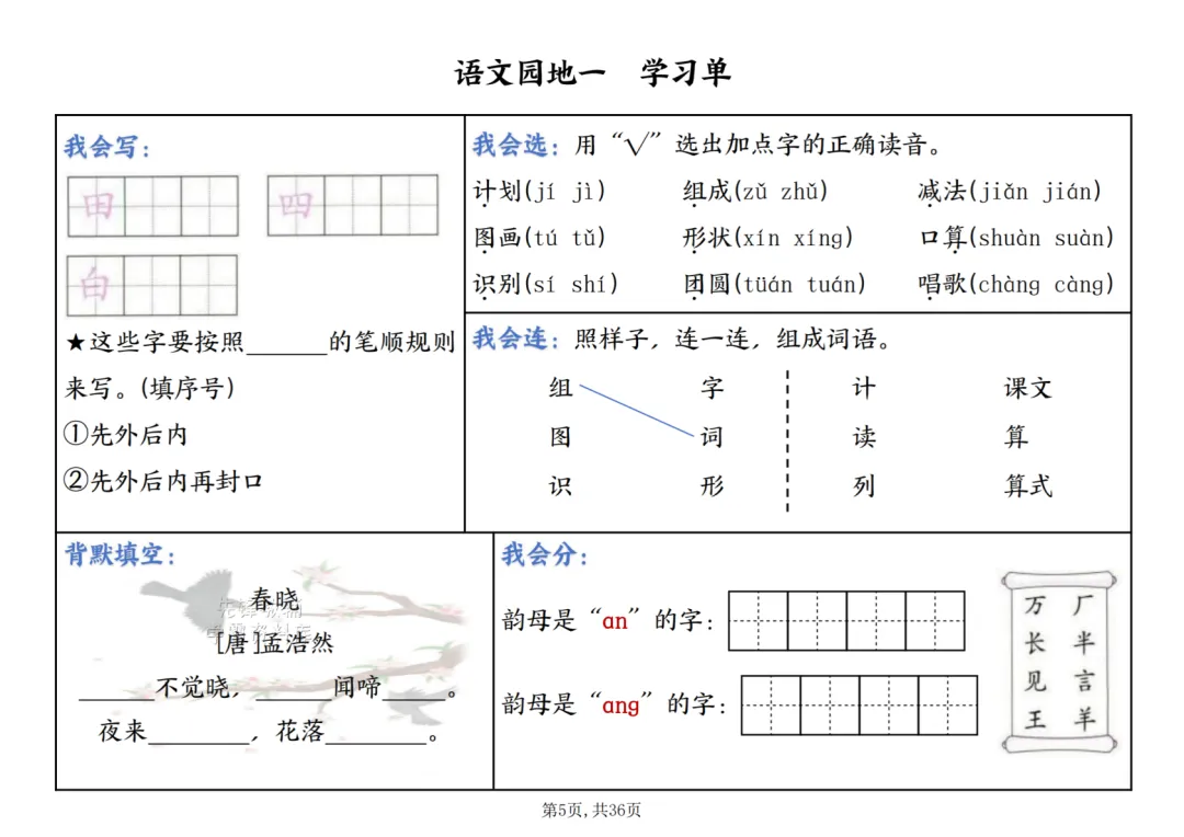 2026年春一年级下册语文同步学习单(电子版可打印)