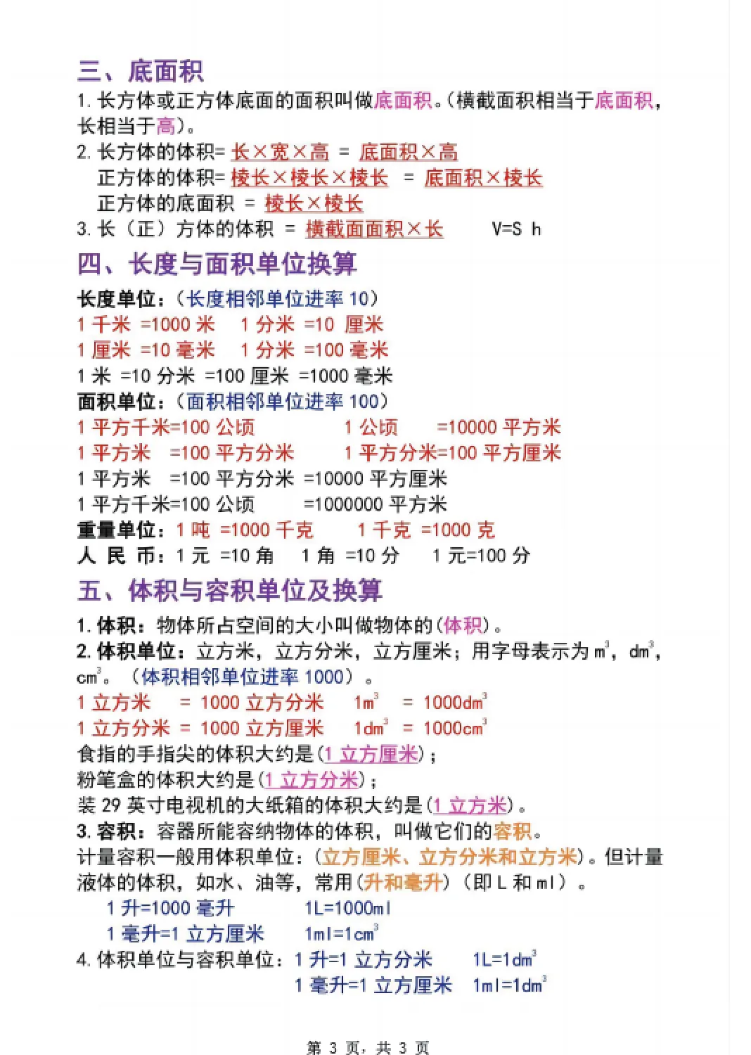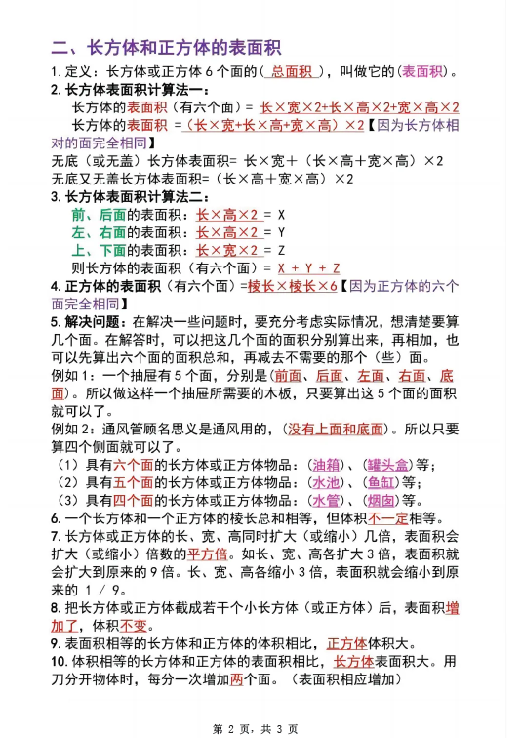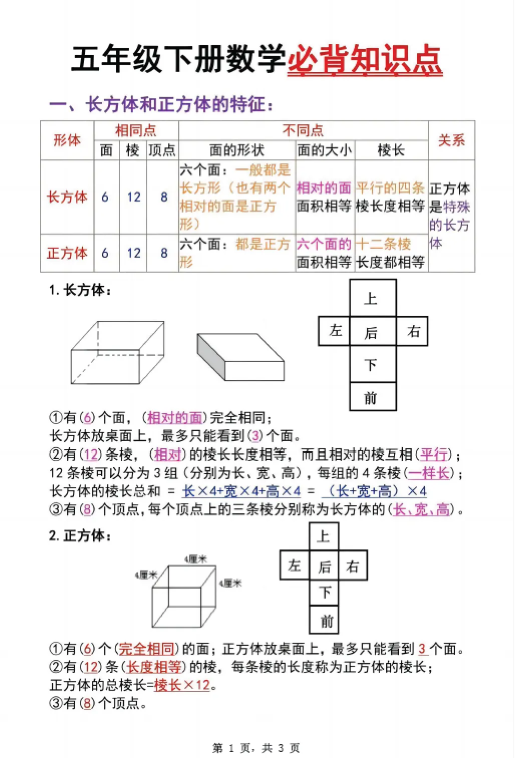 五年级下册数学长方体与正方体必背知识点,电子版可打印