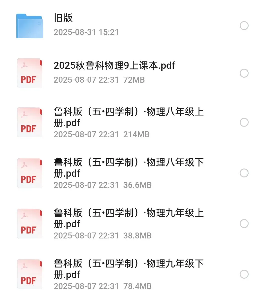 鲁科版五·四学制初中物理电子课本2025合集免费下载