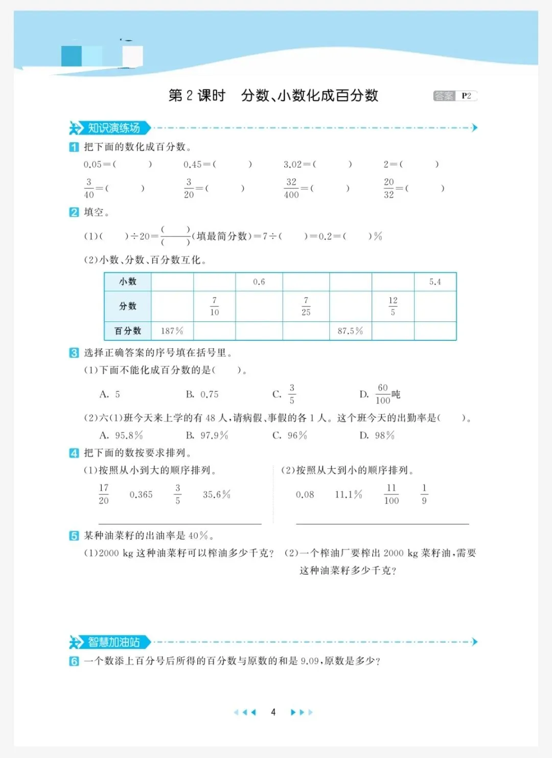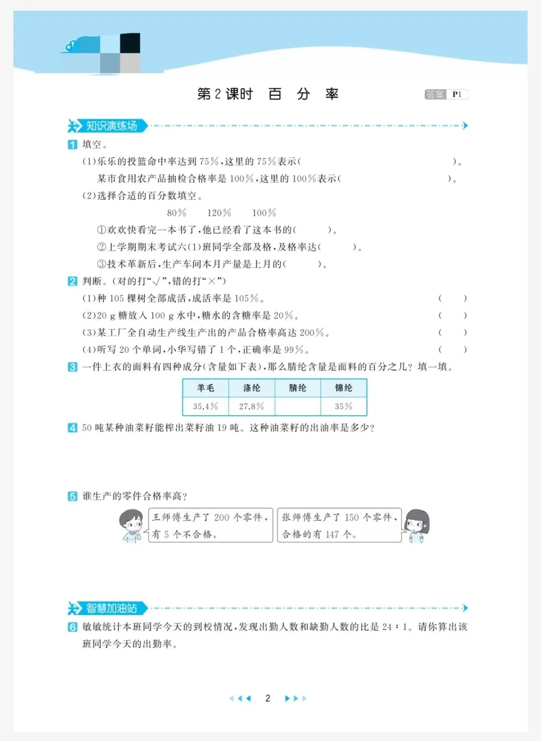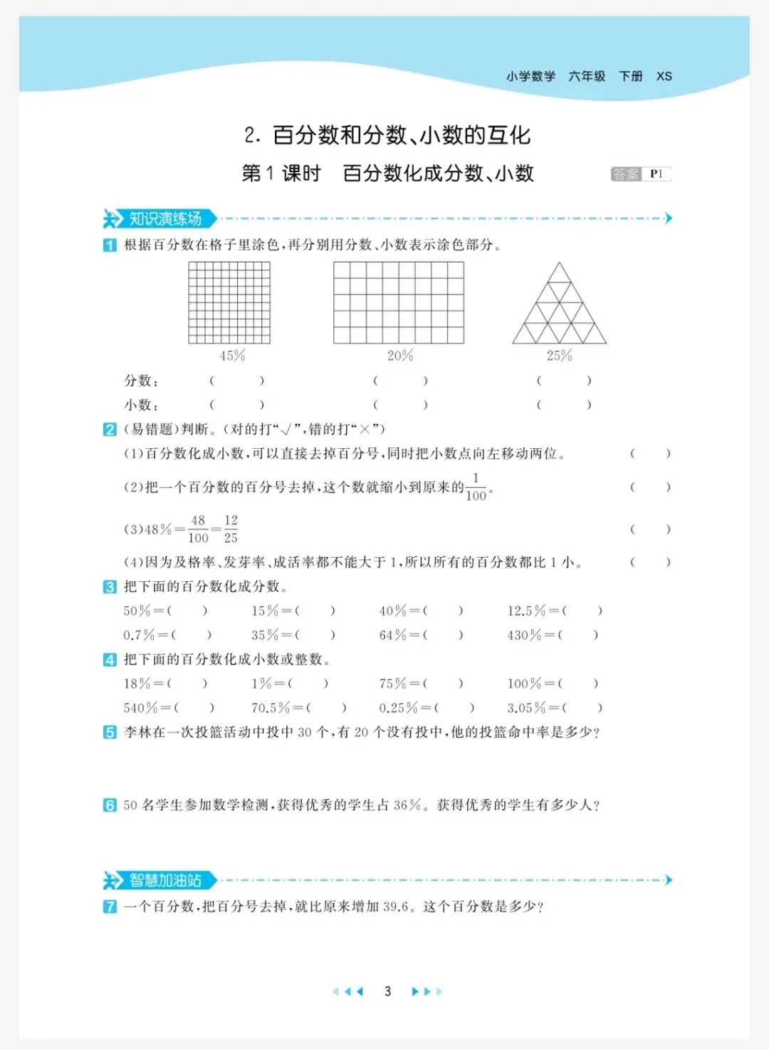 西师版数学六年级(下册)全册《一课一练》含答案 电子版免费可下载