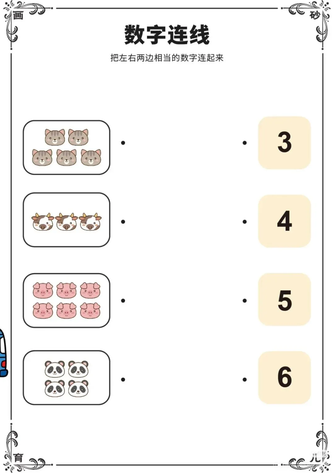 :涵盖观察力训练、数字连线、逻辑思维、数字认识、数物对应、找规律等多种核心启蒙题型。 - 画风可爱有趣