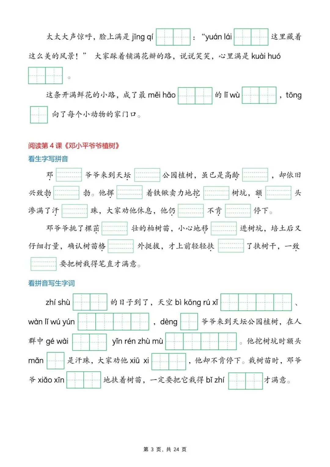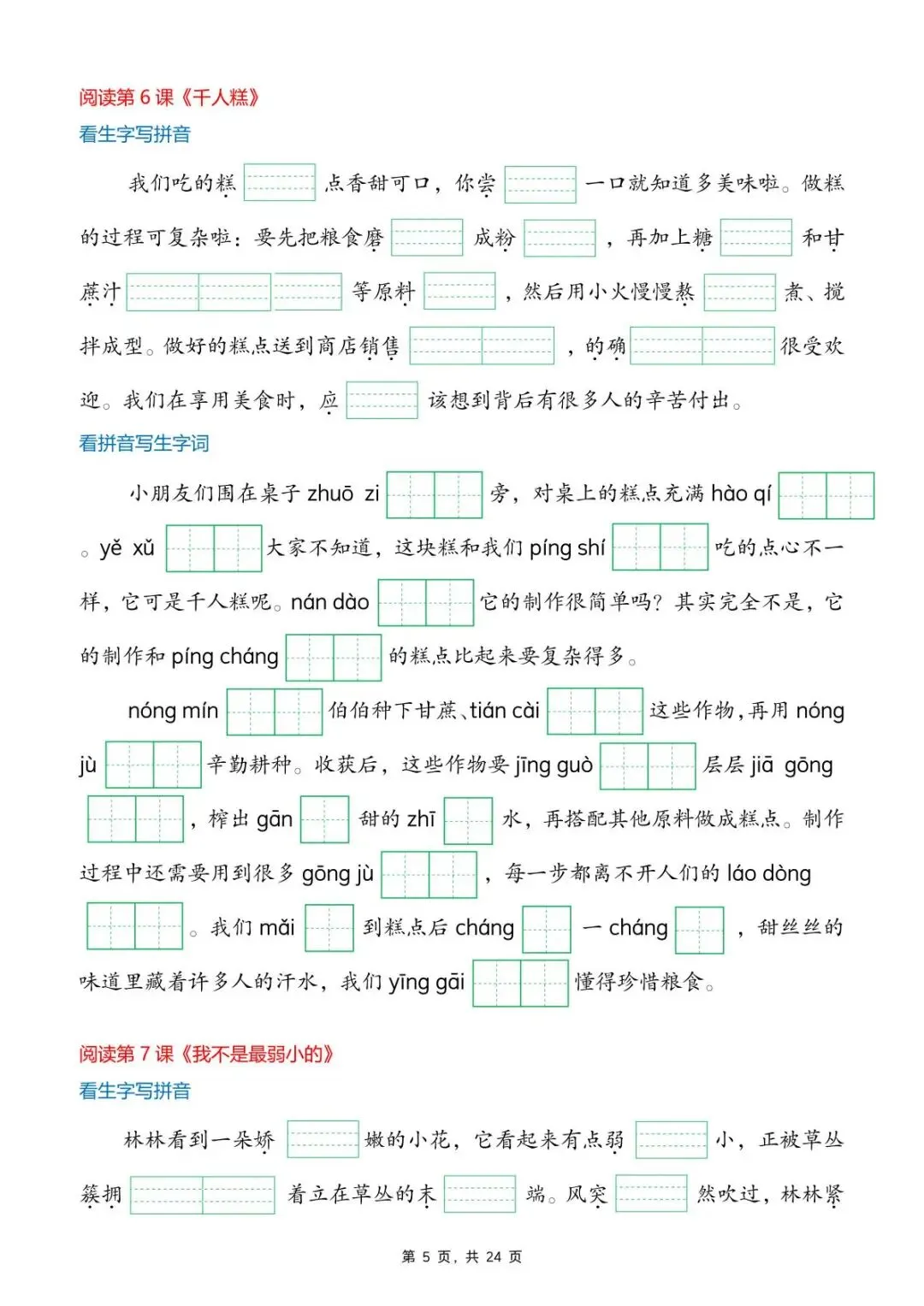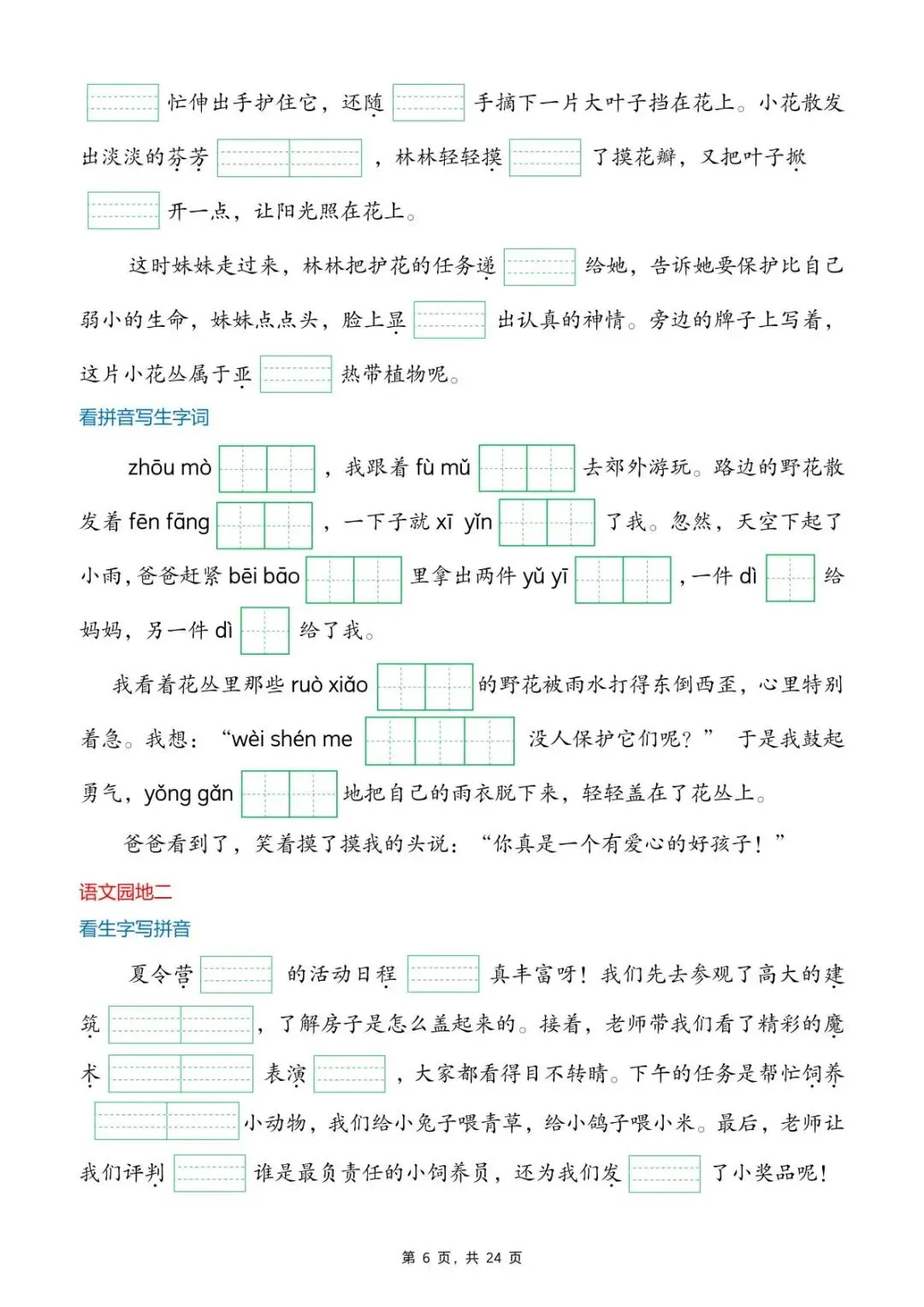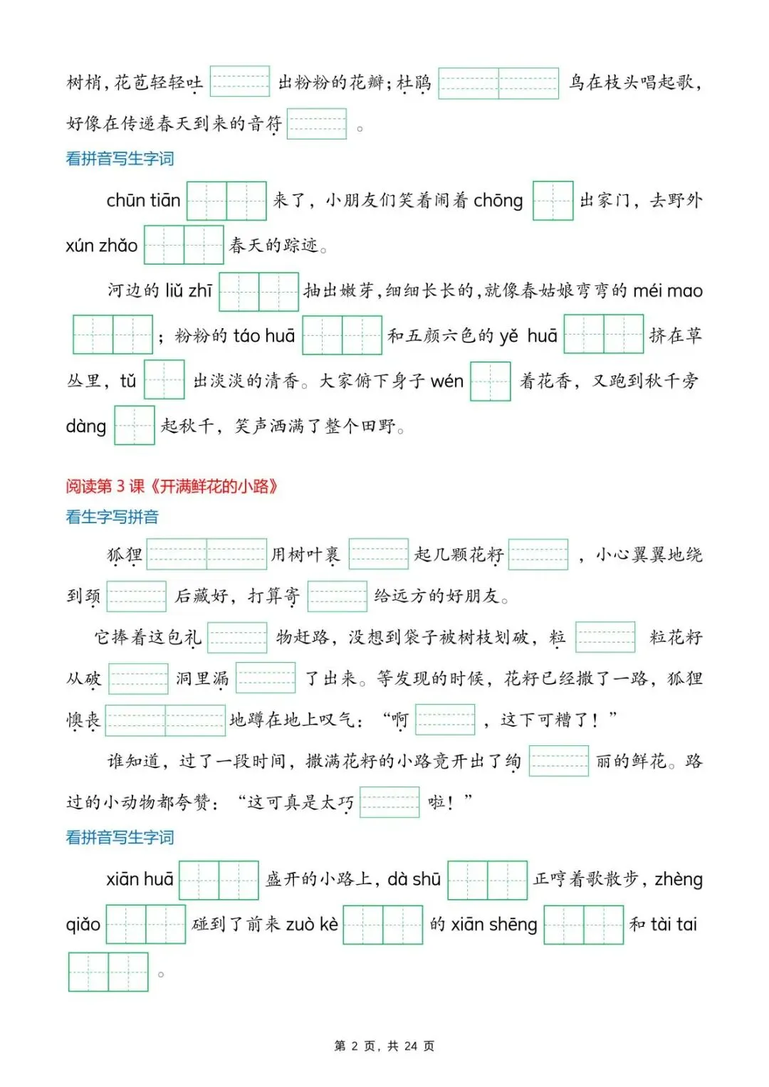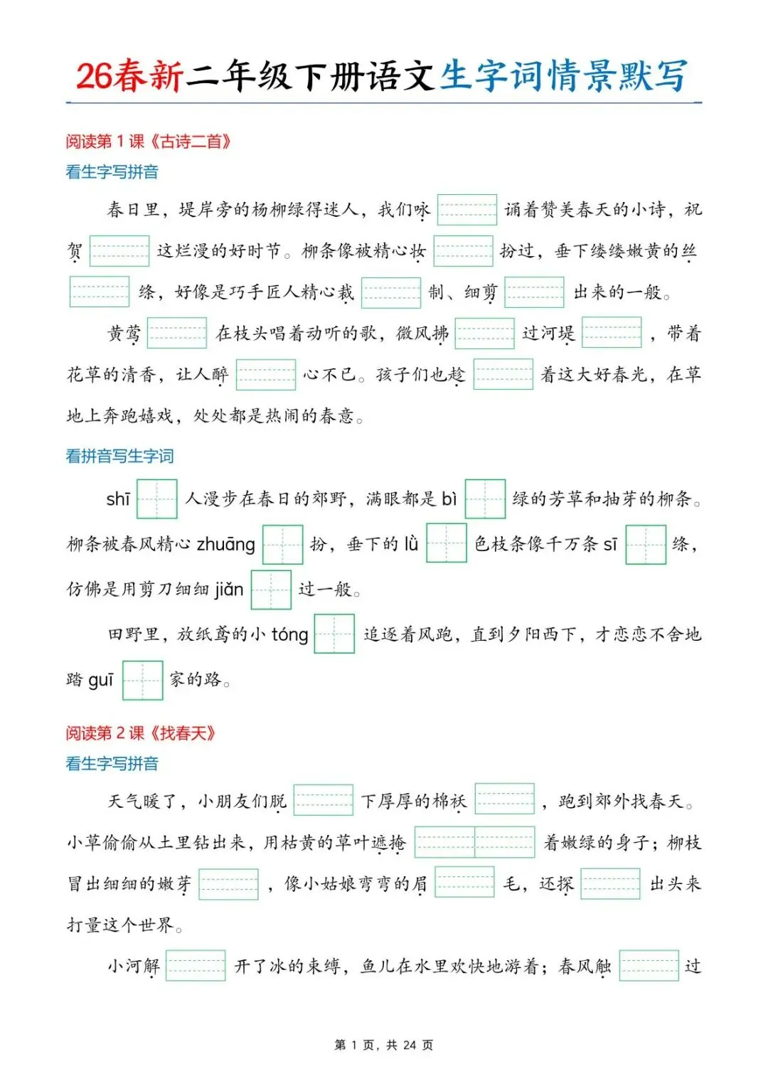 新版二年级下册语文《生字词情景默写》,电子版可打印