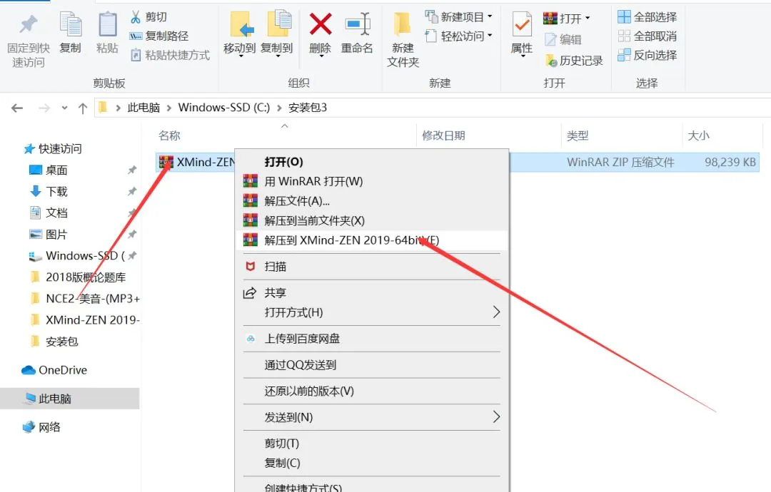1.从文末下载安装包后解压Xmind 2019