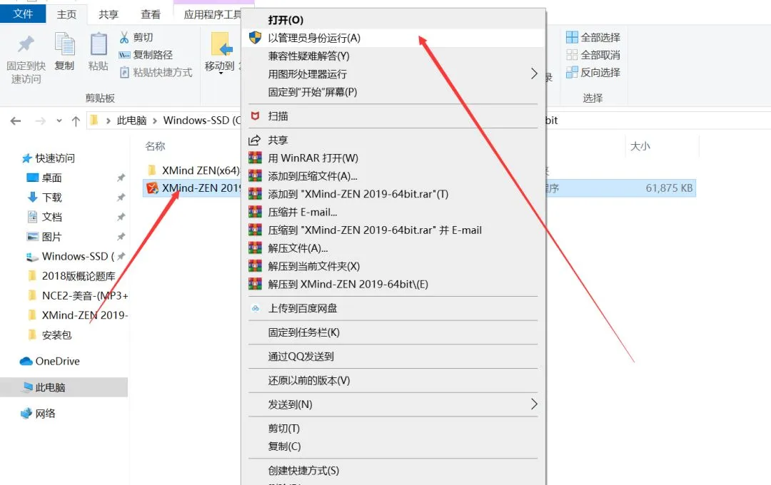 2.鼠标右边XMind ZEN 2019选择以管理员方式打开
