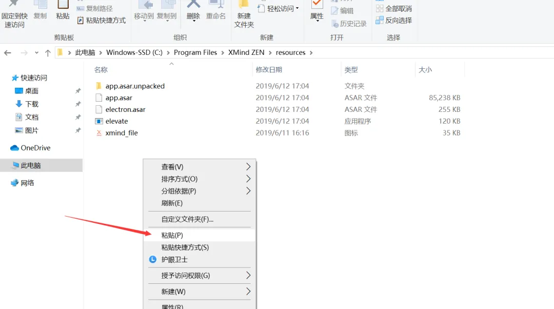 8.在文件夹空白处鼠标右击选择粘贴,把刚刚复制的XMind ZEN激活补丁粘贴到resources文件夹里。