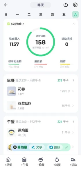 整个过程无需跳转其他应用,也无需复杂的计算,真正实现了“随手记、随时看”。对于想要控制体重或改善饮食结构的用户来说,这个功能是核心中的核心。